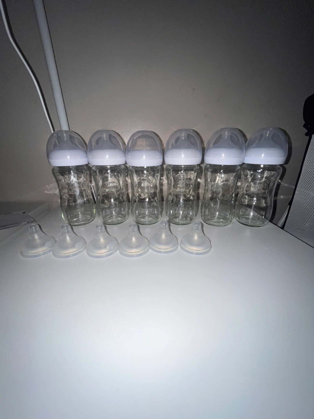 10Used only for 3 weeks, baby didn’t like nipples. Flow 3 Philips advent nipples and slow flow lansinoh nipples that also fit on the bottles. One bottle missing a nipple.