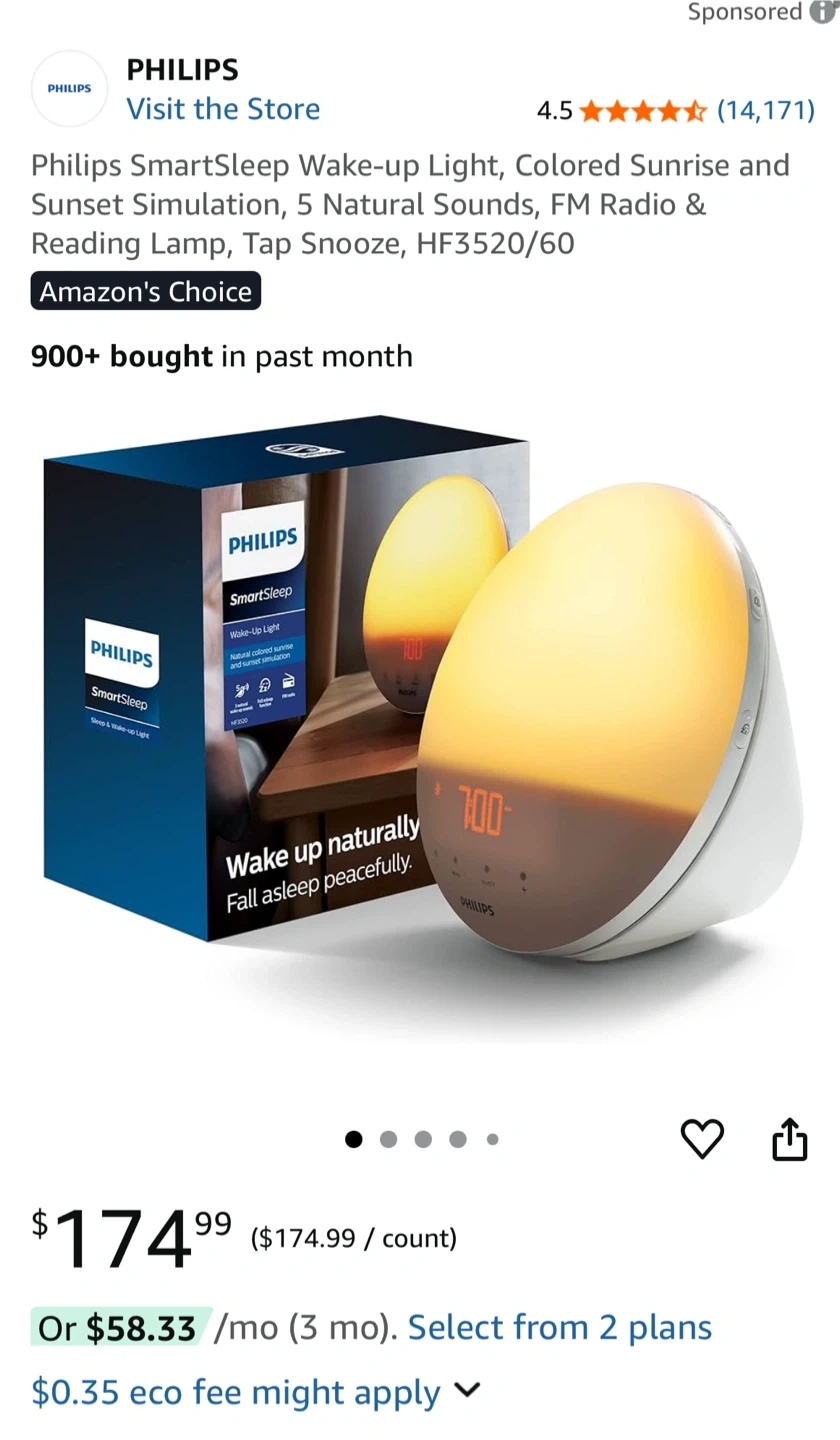 65Selling a Philips SmartSleep Wake-up Light, model. It simulates sunrise and sunset, has 5 natural sounds, FM radio, and functions as a reading lamp. Great for gentle wake ups! I like the bird chirping alarm option. It also has a tap snooze feature. Originally bought for $174.99