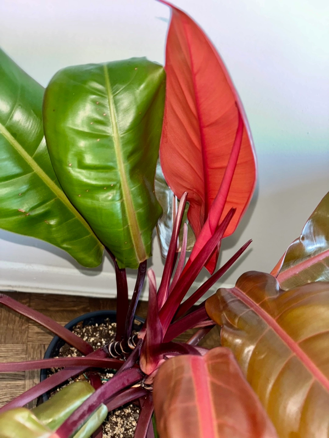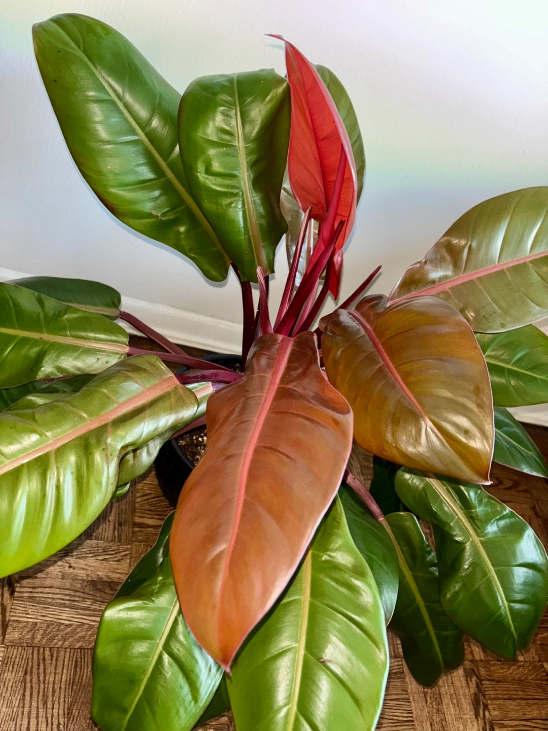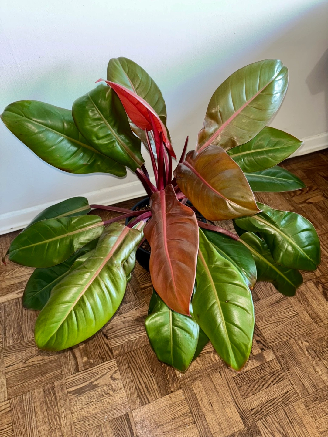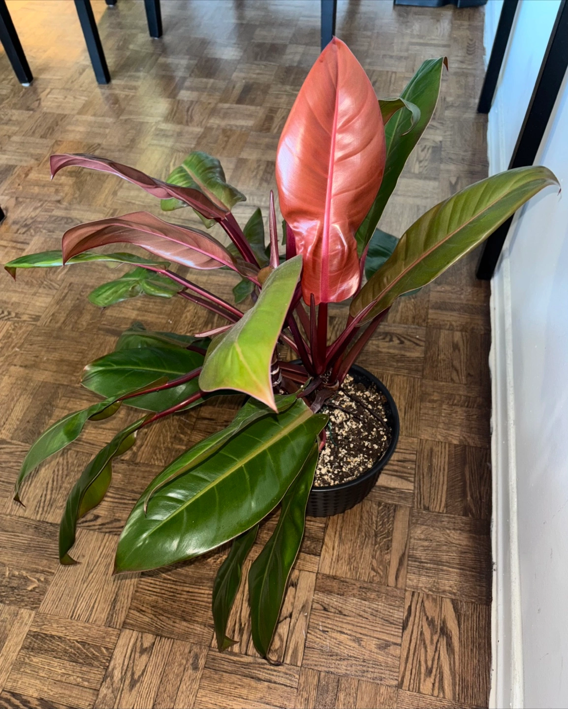39Philodendron ‘Prince of Orange’ – $80 Striking Philodendron ‘Prince of Orange’ featuring two lush plants in a single 8” black ceramic pot with drainage. Known for its bold, coppery-orange new leaves that mature to vibrant green. A statement piece with low-maintenance appeal. Pick up near Dundas West subway station.