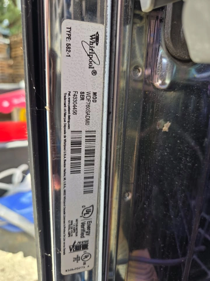 Whirlpool dishwasher for parts. Model number WDF760SADM0. Circulation pump failed, otherwise complete. All racks are in excellent condition (no rust). Rack replacements alone cost $200+ new.
