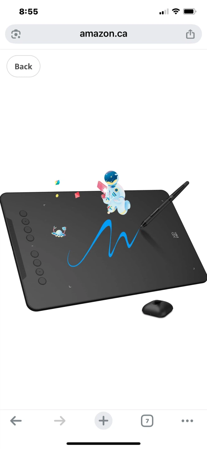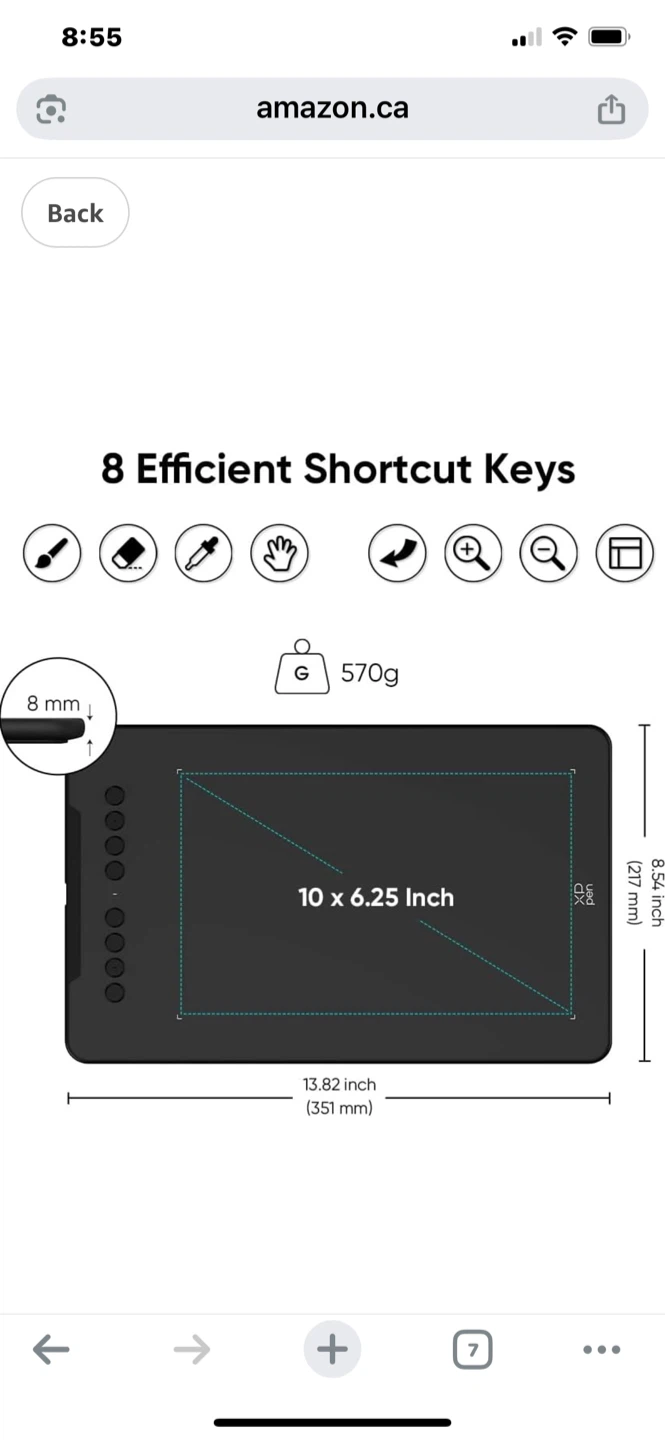 This drawing tablet features a 10 x 6.25 inch active area with 8 shortcut keys. It has 16,384 levels of pressure sensitivity and supports a 60-degree tilt brush effect. Compatible with Windows, Linux, Chrome OS, Mac OS, and Android devices.