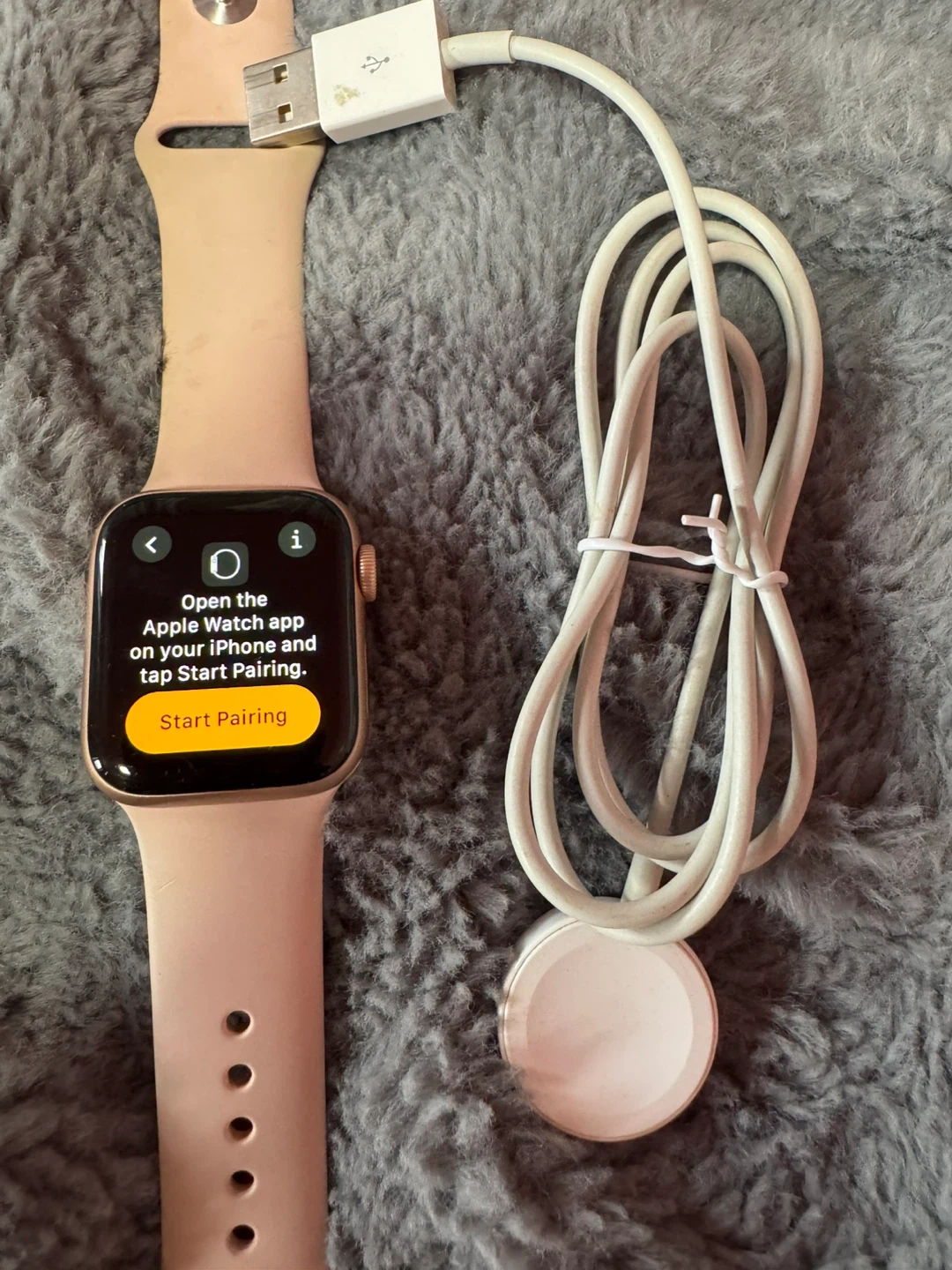 Buy & SellApple Watch Series 6, 40mm GPS, Gold aluminum caseApple Watch Series 6, 40mm GPS, Gold aluminum case$98Apple Watch Series 6, 40mm GPS model. Gold aluminum case with a pink sand sport band. Includes charging cable.WHERE TO MEETCathy Bank ElmhurstView MapSELLERverifiedMayElmhurst600 reviews3 chats·4 favorites·250 viewsSEND CHAT TO SELLERHi May! I’m interested in your listing.Hi May! I’m interested in your listing.Get the Karrot app to chatSign In to chat