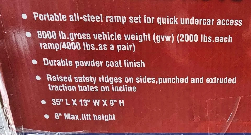 Brand new heavy duty metal car ramps. 8000 lbs gross weight and are extra wide so it can be used for cars and suvs as well. These ones are bigger than the normal ones so yes it can be used for wide vehicles as well.