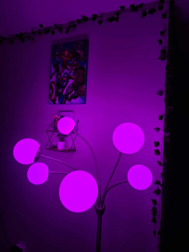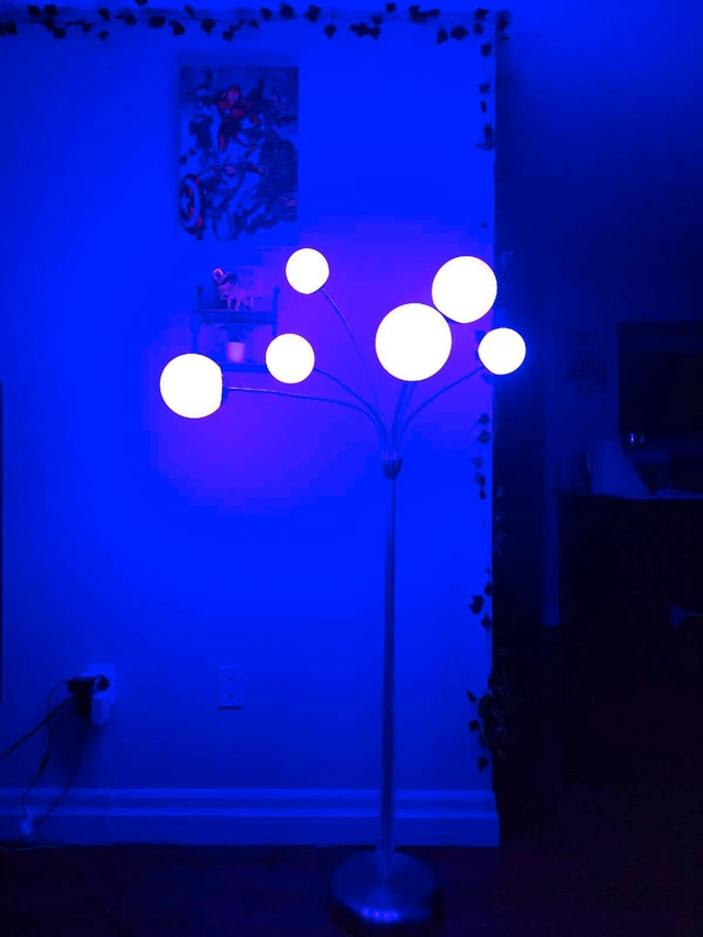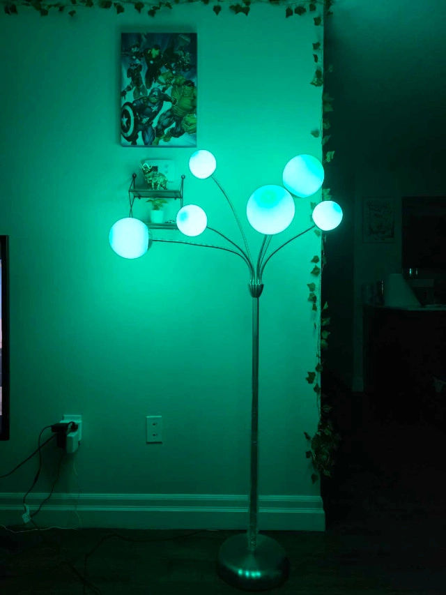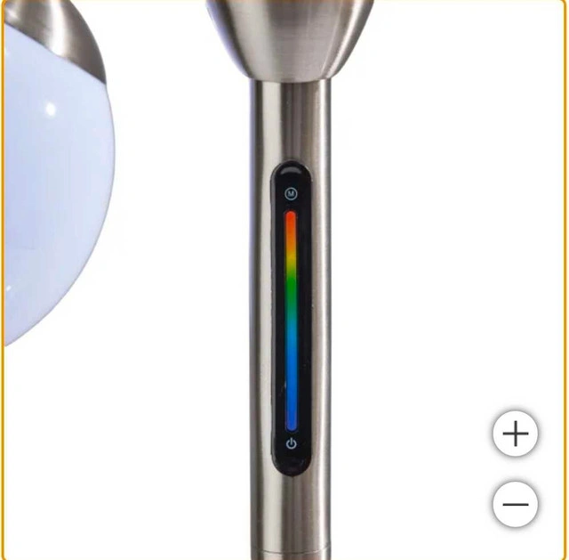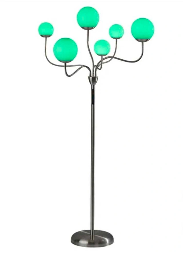 0Enhance your living space with this elegant Phoebe LED Floor Lamp in brushed steel finish. This high-quality lamp combines modern design with practical functionality, providing bright, energy-efficient lightening and a stylish accent for any room. Key Features: • Finish: Premium brushed steel construction • Dimensions : 26"W x 26"D x 64"H • Bulb : 6 x 2W integrated LED (energy-efficient and long-lasting) • Switch : Rainbow Touch Switch • Light Settings : 3 Step Dimmer & Full Range RGB Color Changing • Base : Solid, weighted base for stability (11" Dia × 2" H) • Cord details : 60" black cord • Dimensions : Approximately 5.5 ft tall. If you're looking for a stylish , high-quality floor lamp to elevate your interior decor, this is an excellent choice! Serious inquiries only.