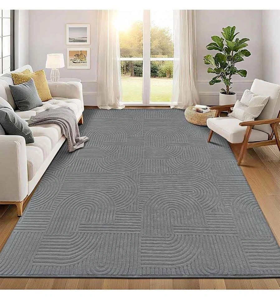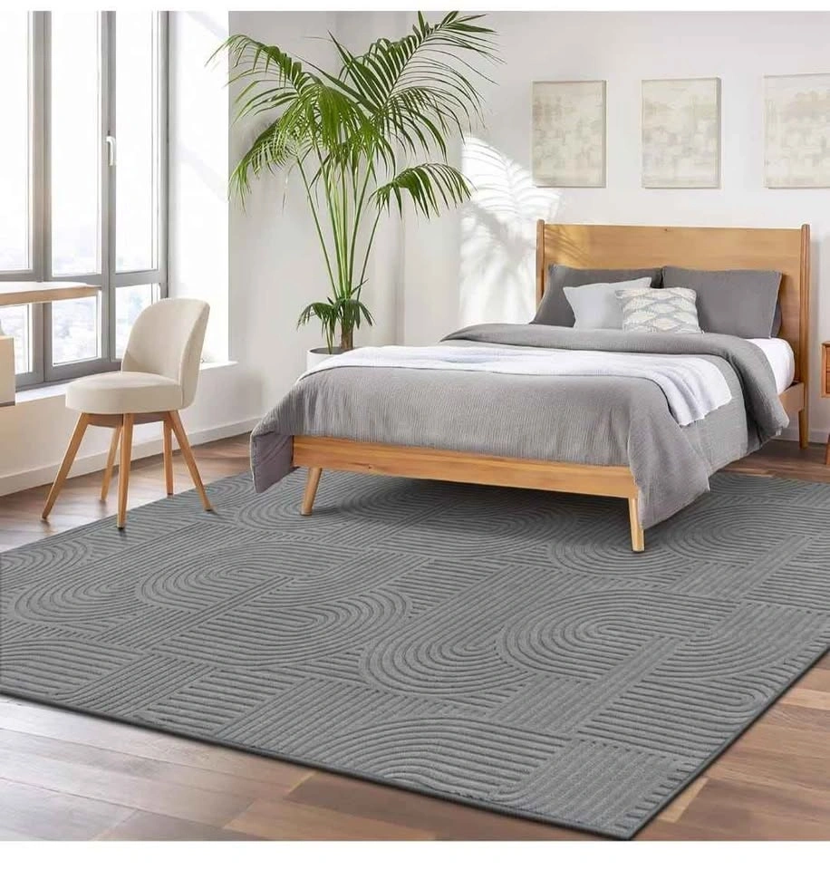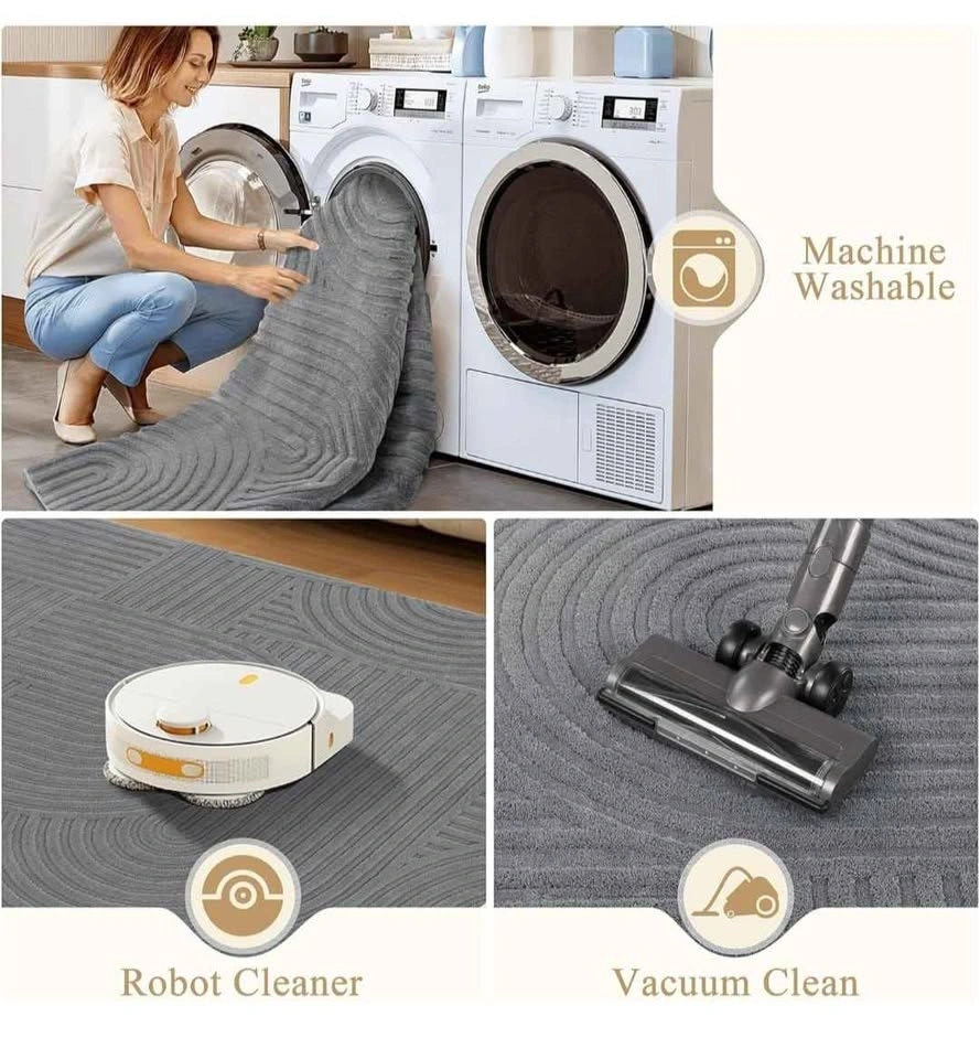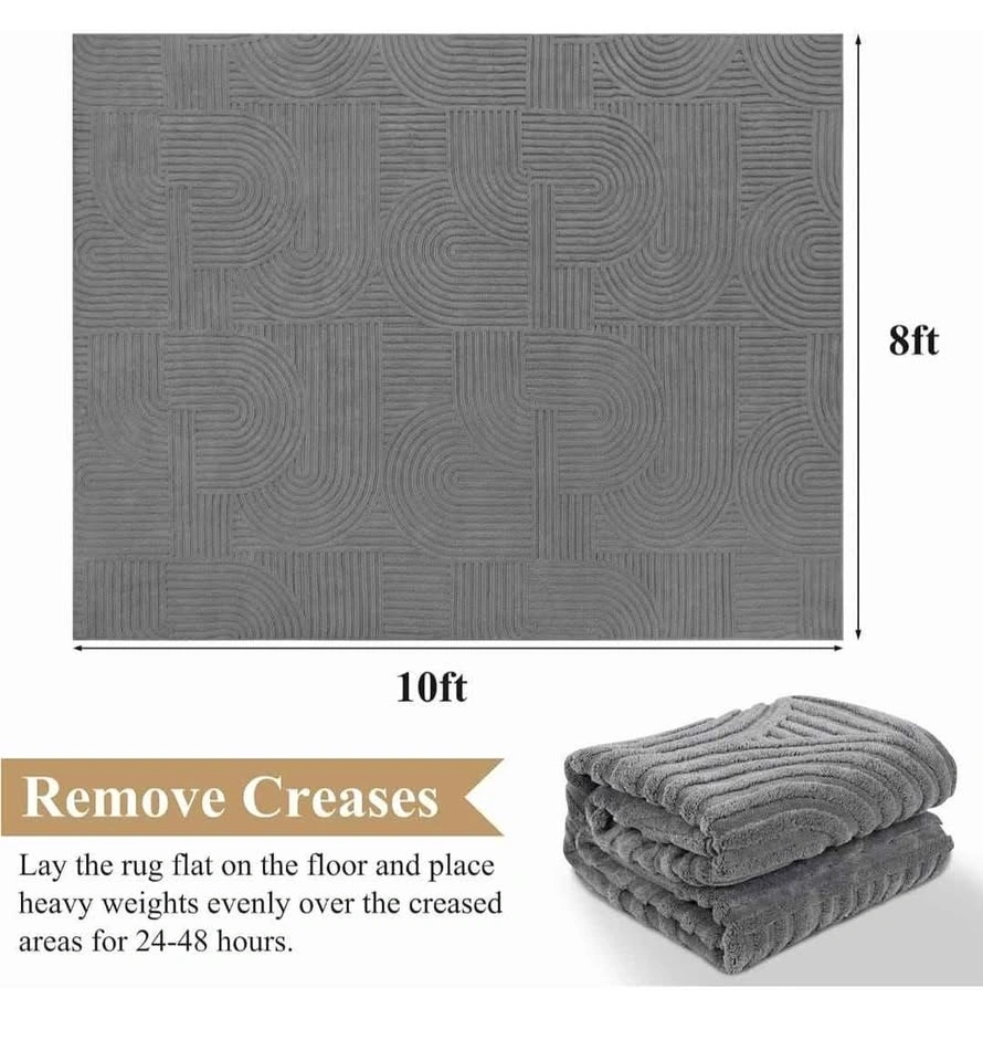 Brand new 8x10 washable area rugs. Soft and fluffy grey rugs, perfect for living rooms, bedrooms, kids' rooms, dining rooms, kitchens, or offices. Non-slip design with a boho accent style. Suitable for indoor use.