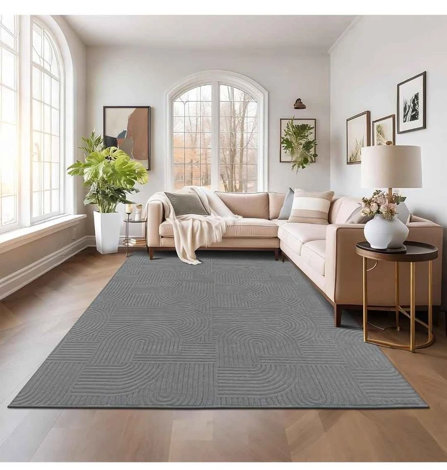 Brand new 8x10 washable area rugs. Soft and fluffy grey rugs, perfect for living rooms, bedrooms, kids' rooms, dining rooms, kitchens, or offices. Non-slip design with a boho accent style. Suitable for indoor use.