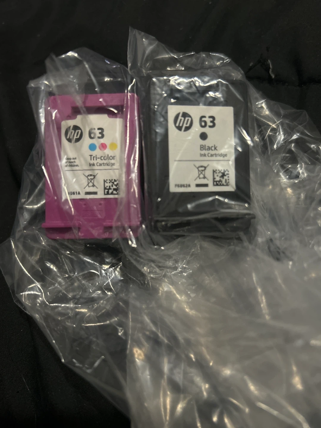 Set includes one HP 63 black ink cartridge and one HP 63 tri-color ink cartridge. Genuine HP ink for your printer. They are both more than half full, I just got a new printer and these aren’t compatible.