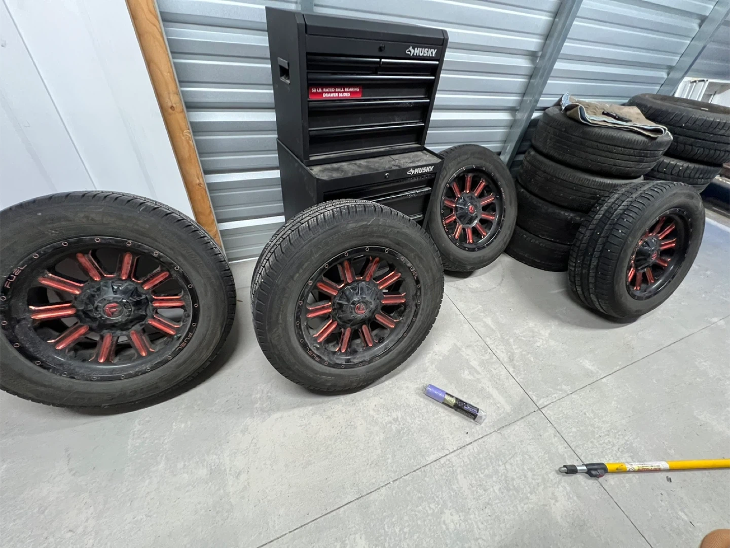 Set of 4 Fuel Off-Road D621 Hardline wheels in gloss black with red tint in great used condition.