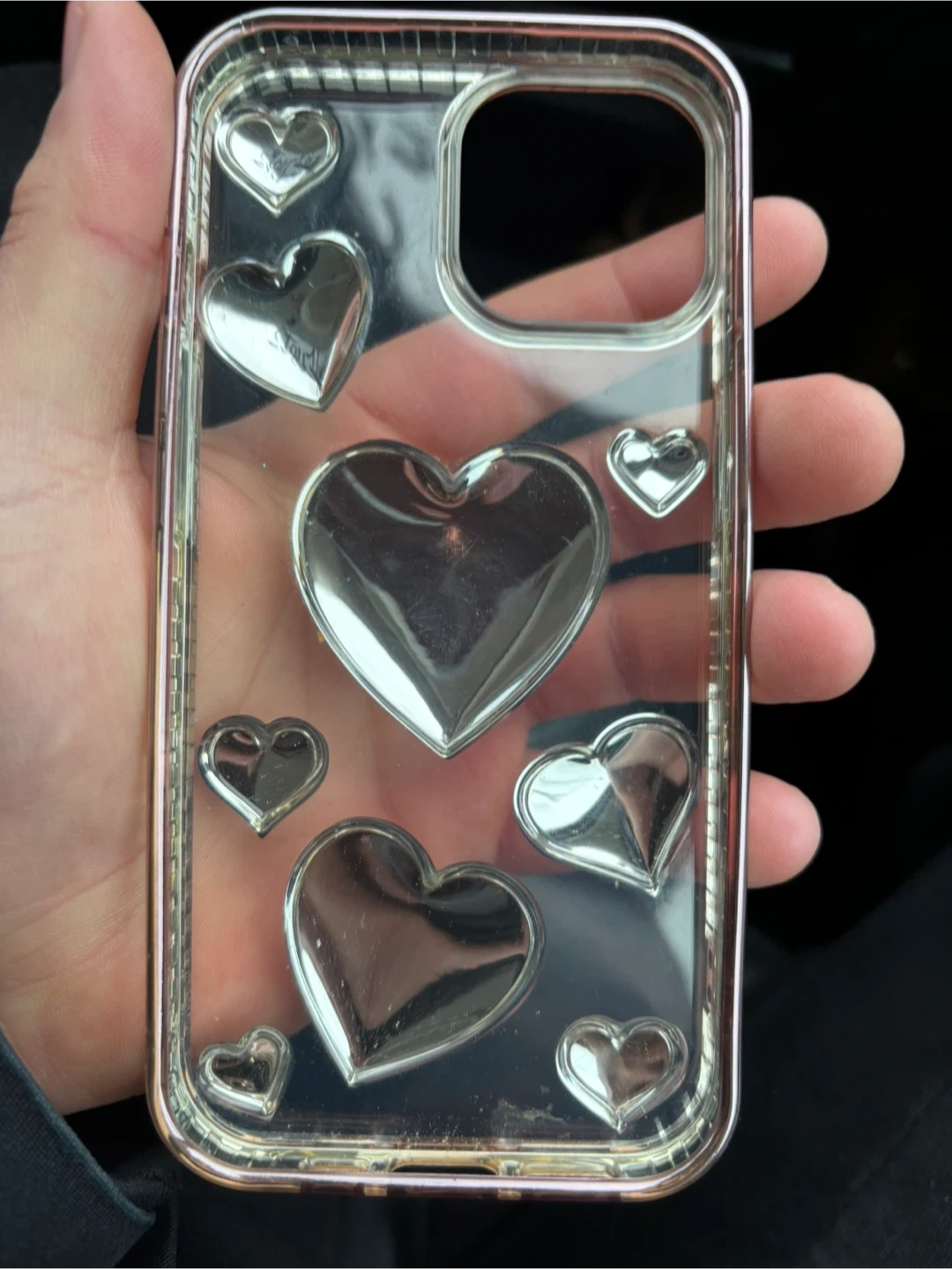 Selling a phone case with a super cute heart design! It's in great condition and would be perfect for anyone who loves a bit of sparkle.