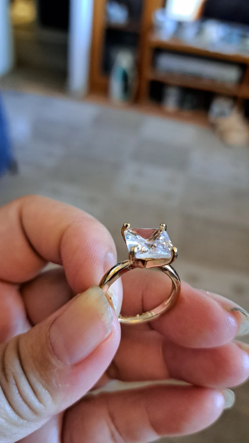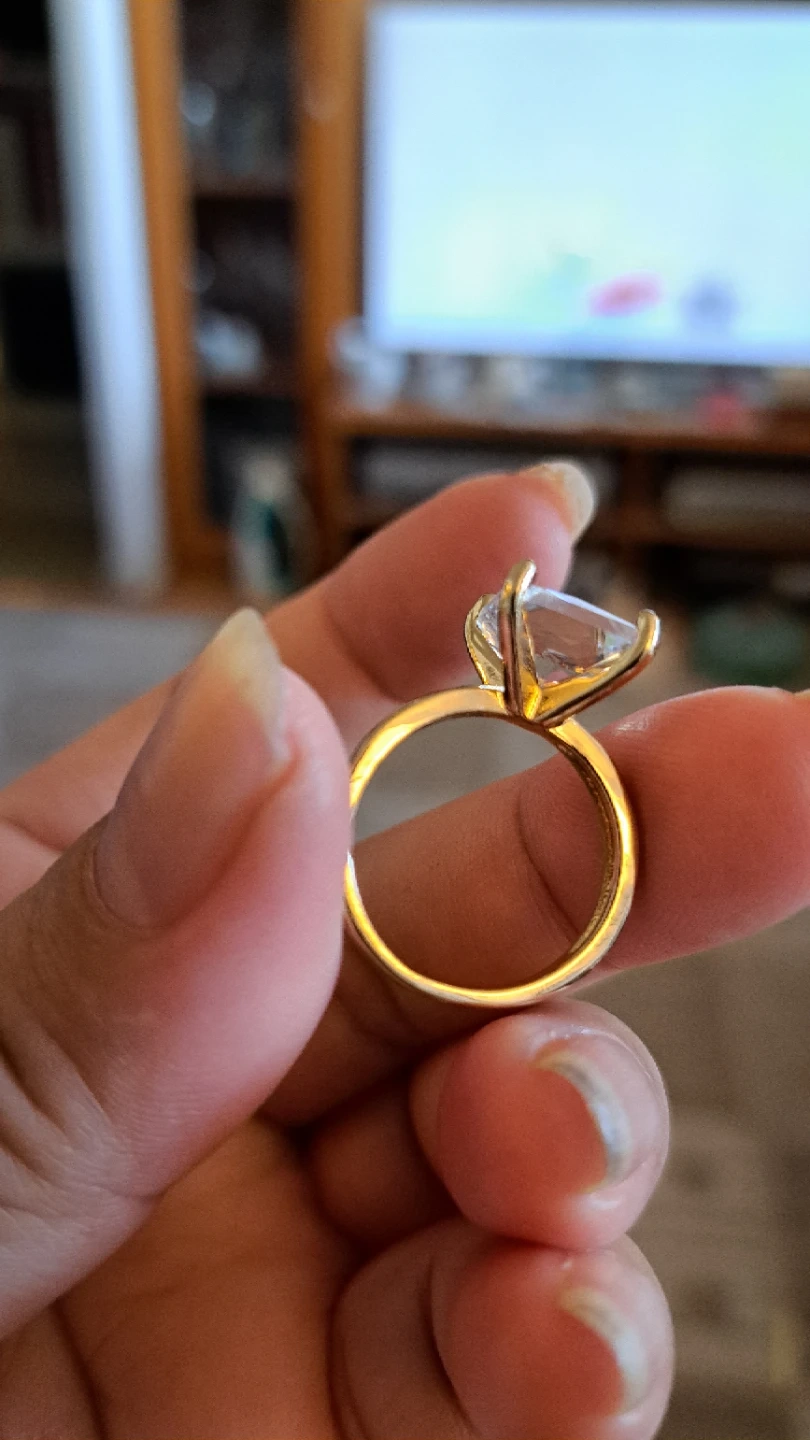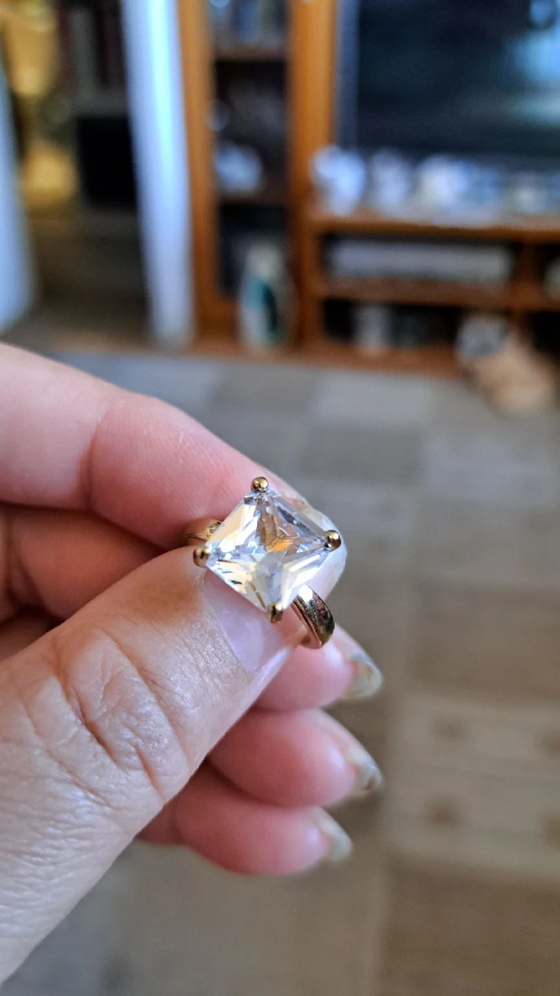 Sparkly square-cut gem set in a gold-tone band. It's a statement piece for any occasion. Perfect for adding a touch of glamour!
