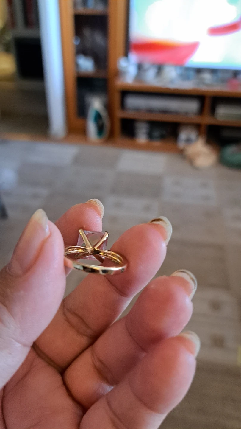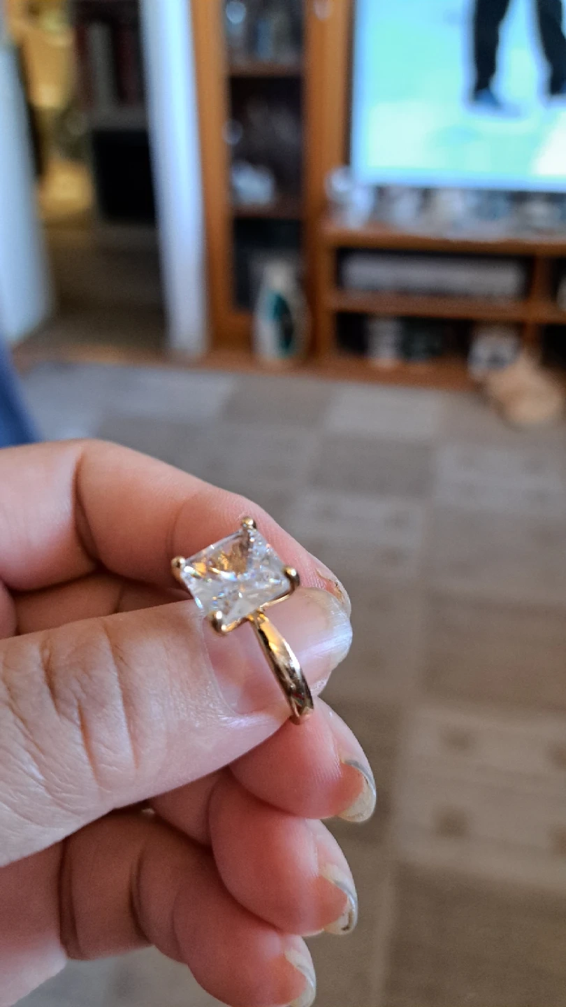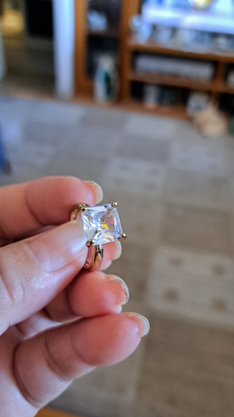 Sparkly square-cut gem set in a gold-tone band. It's a statement piece for any occasion. Perfect for adding a touch of glamour!