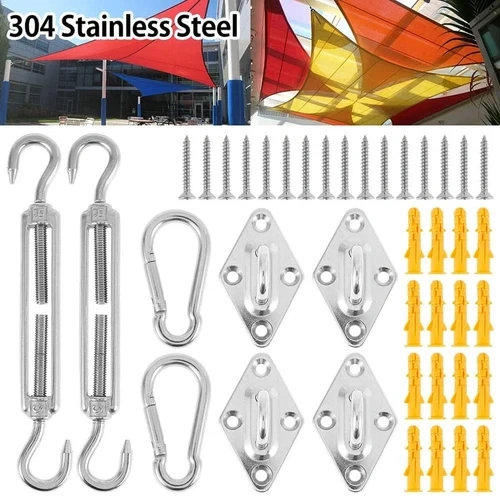 40-piece sun shade hardware kit for triangle and rectangle sun shade sail installation. Made of 304 grade stainless steel for garden and outdoor use.