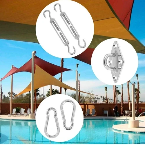40-piece sun shade hardware kit for triangle and rectangle sun shade sail installation. Made of 304 grade stainless steel for garden and outdoor use.