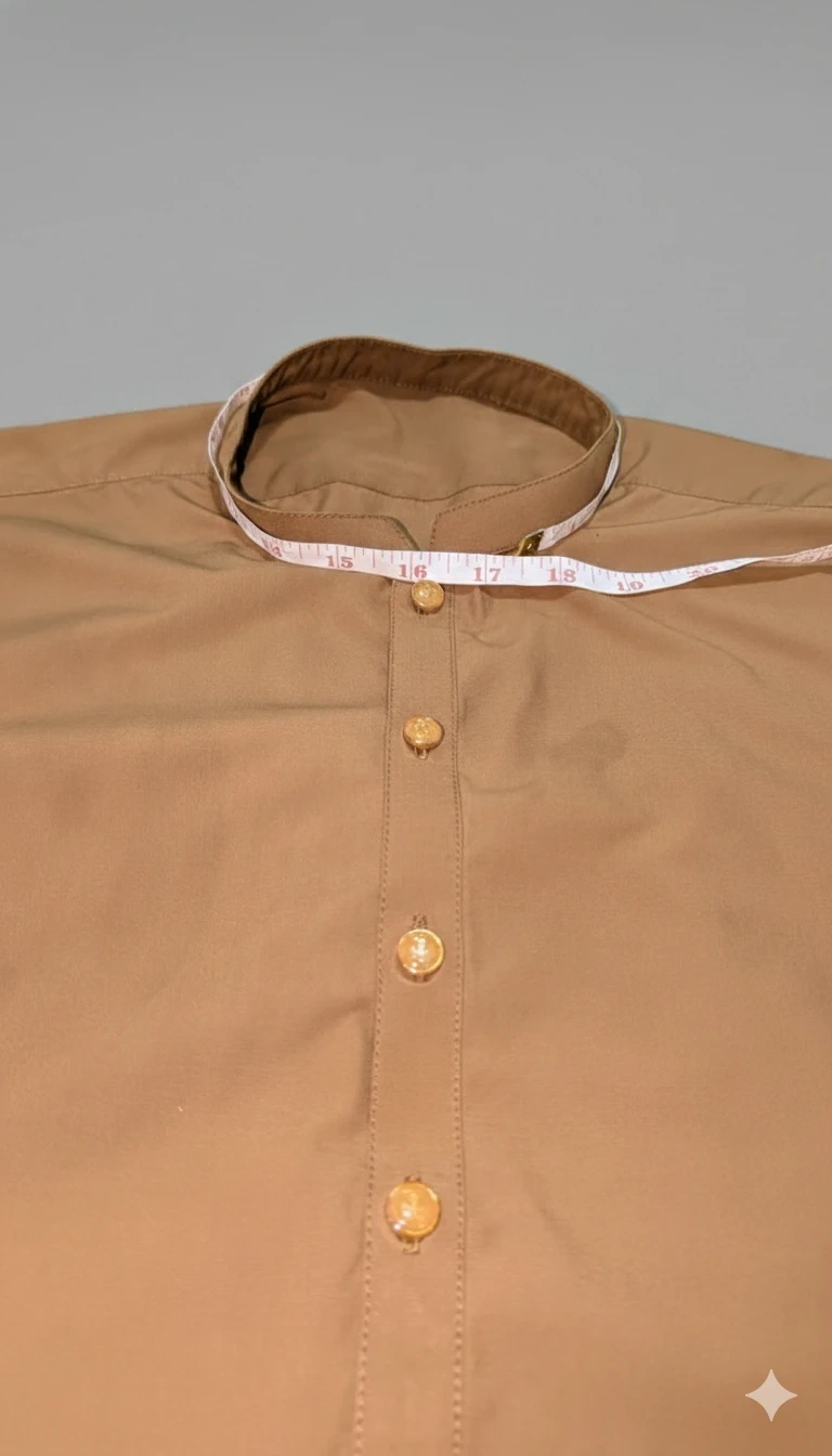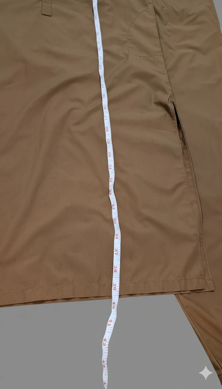 Selling a brown kurta, perfect for a relaxed yet stylish look! The kurta has a mandarin collar with button detailing, and the pajama pants are comfortable and easy to wear. The measurements in the photos should help you get a sense of the size! Barely any stains. Used once, so it's like new.