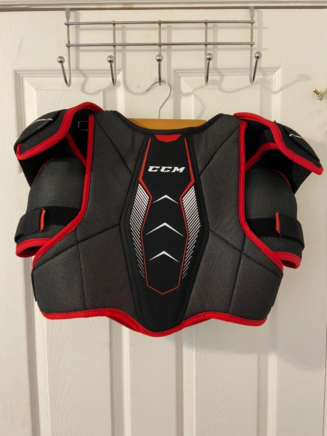 Gently used senior CCM hockey shoulder pads in size Medium for sale.