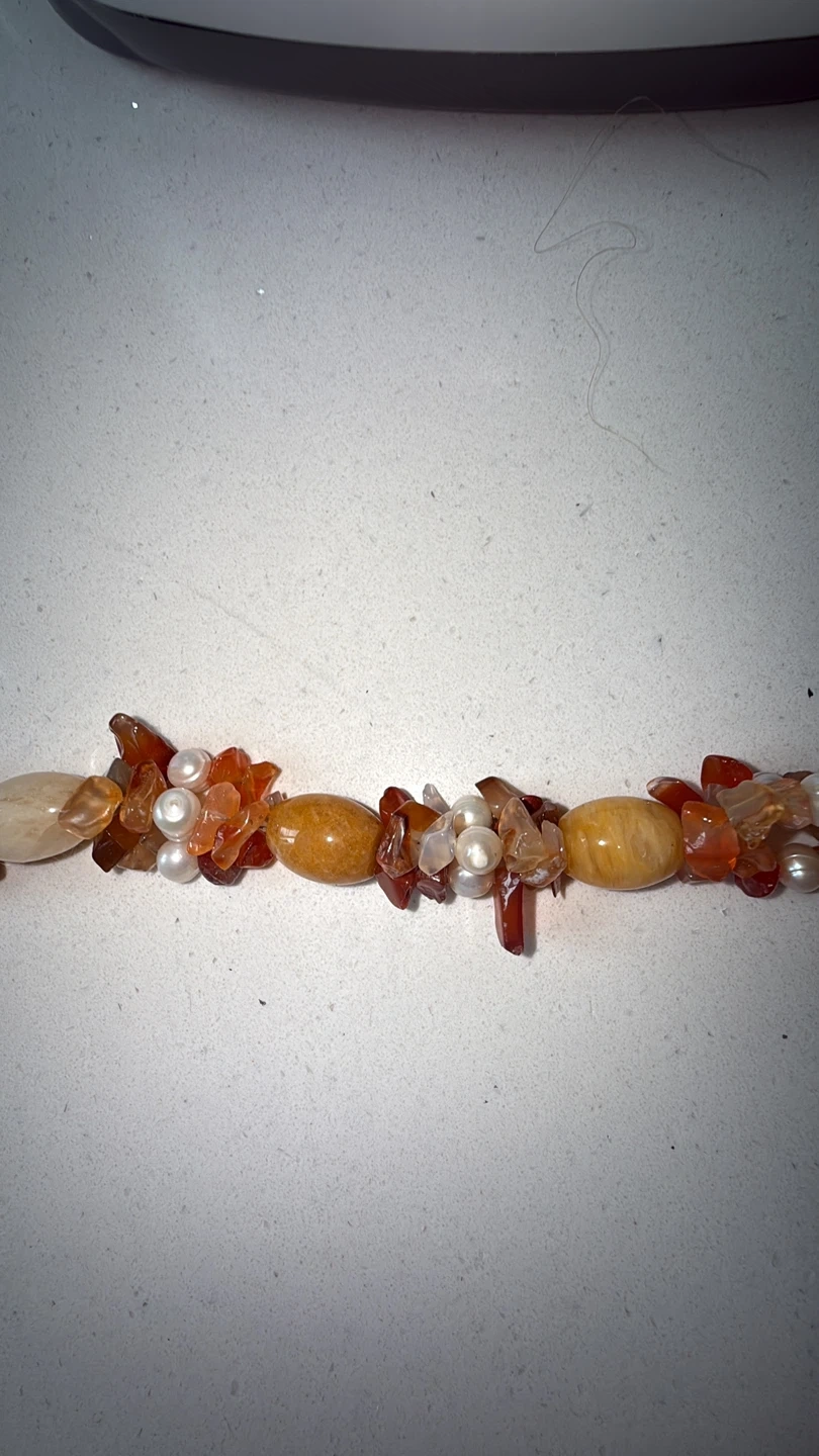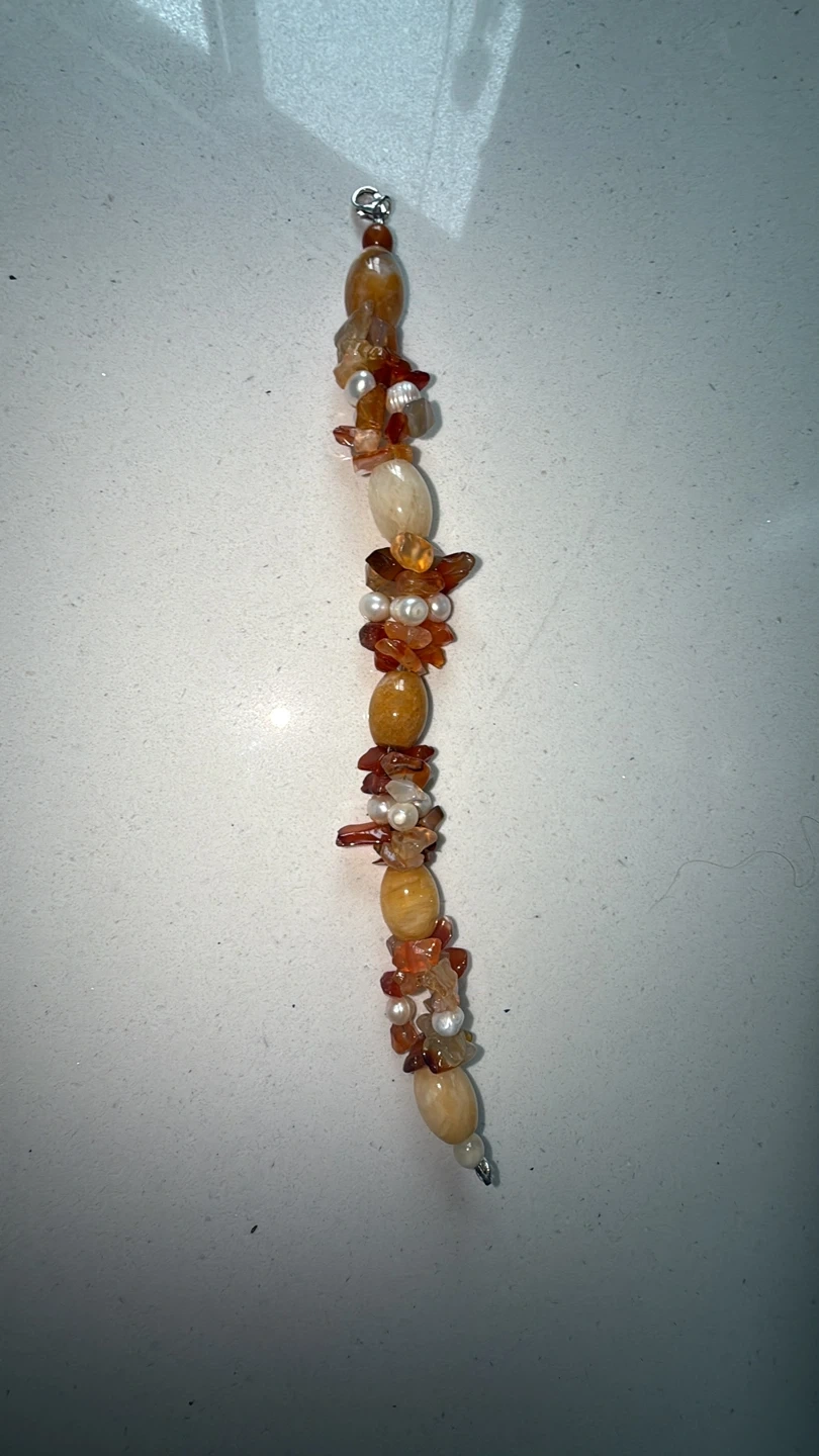 This elegant, Precious stones bracelet has Genuine Carnelians, 6.0 mm freshwater Pearls and others. Has a 925 Stamped clasp closure.as well.