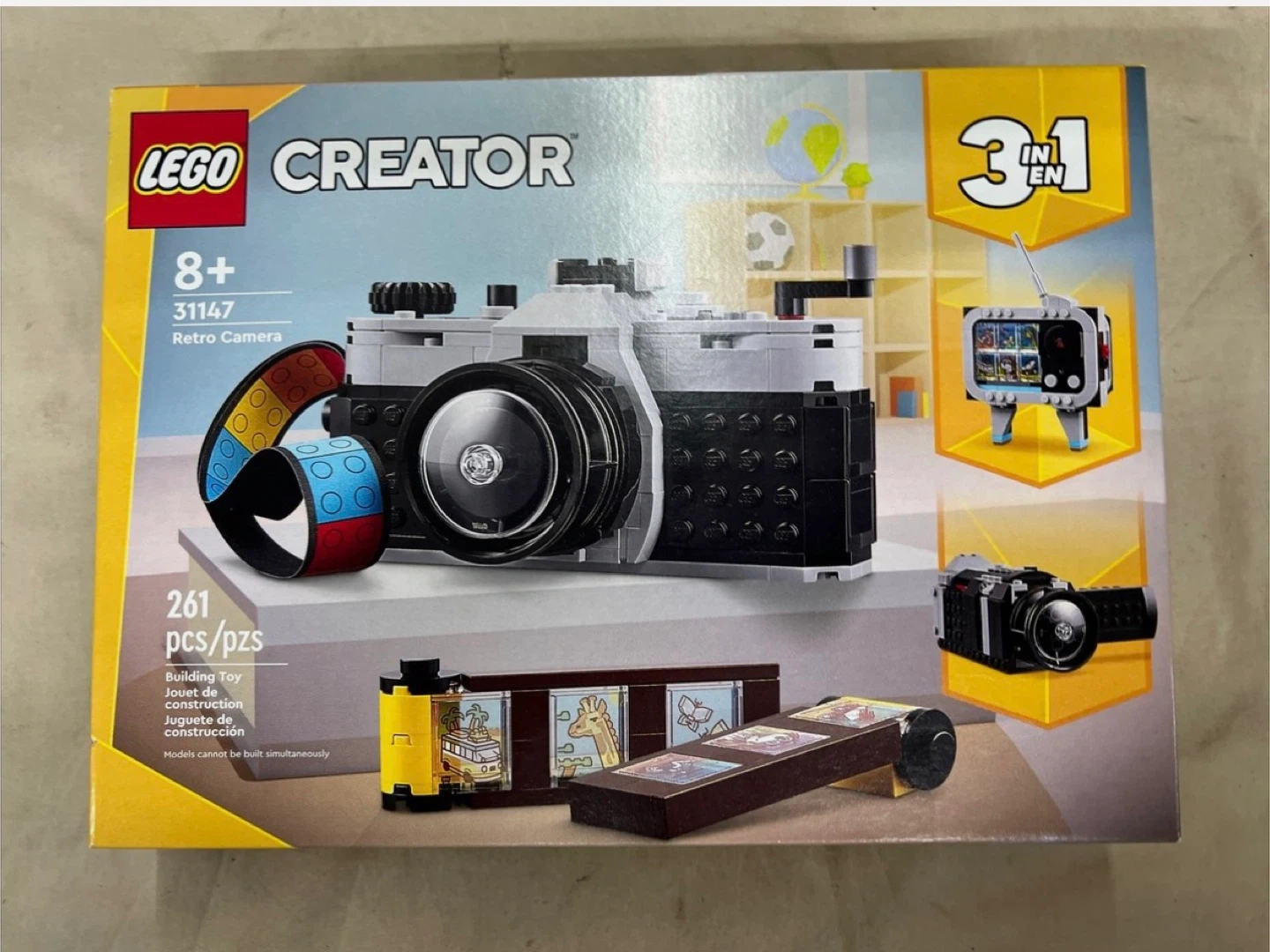 This is the LEGO Creator 31147 Retro Camera set. It's a building toy with 261 pieces. Models cannot be built simultaneously.