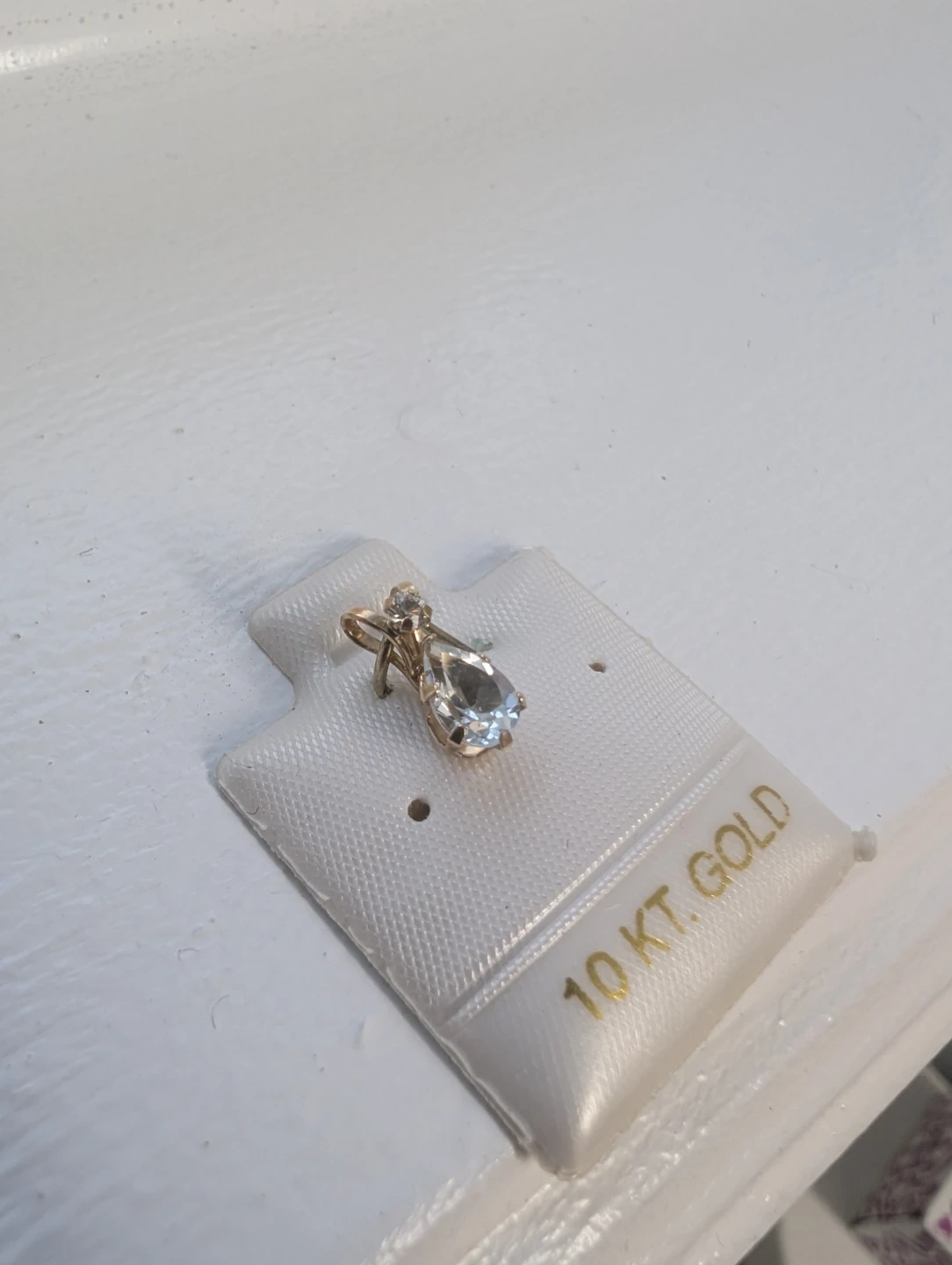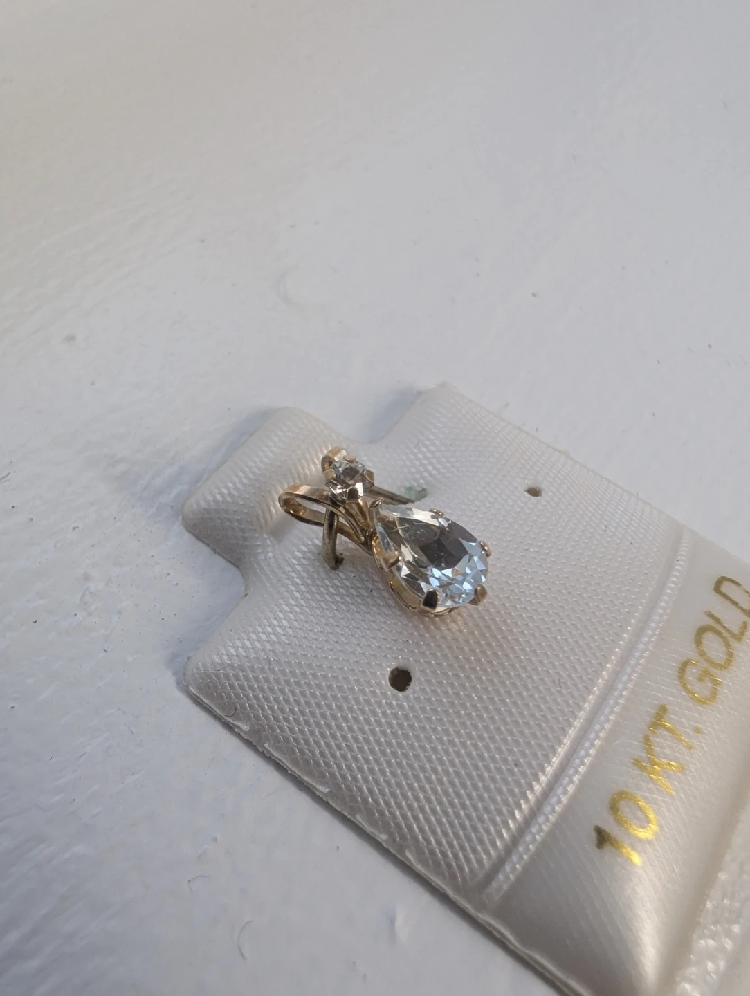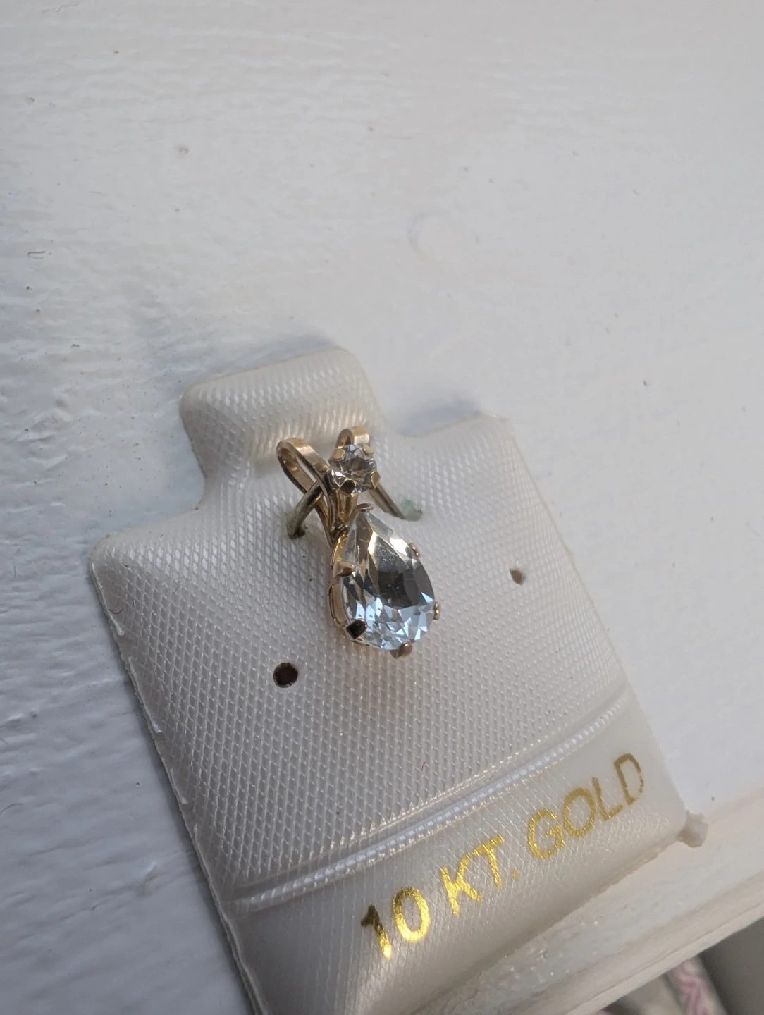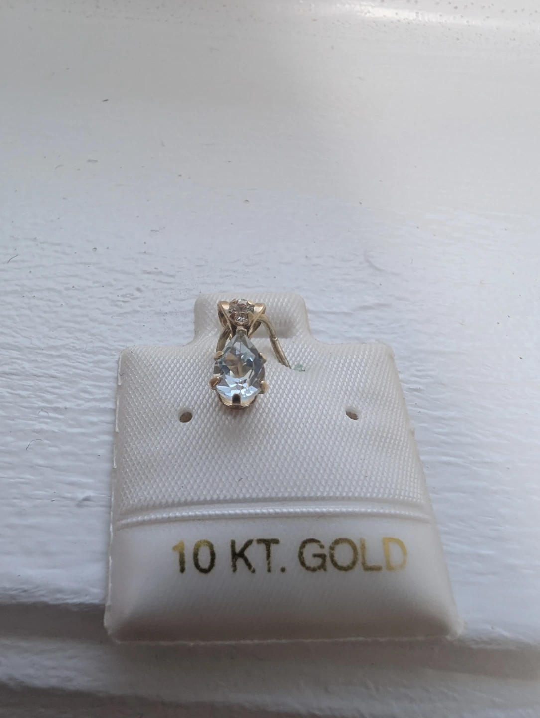 Brand new 10kt yellow gold aquamarine gemstone necklace pendant for sale. Genuine aquamarine gem stone pendant, 0.55ct carats, March birthstone, made in Canada, $80 FIRM.