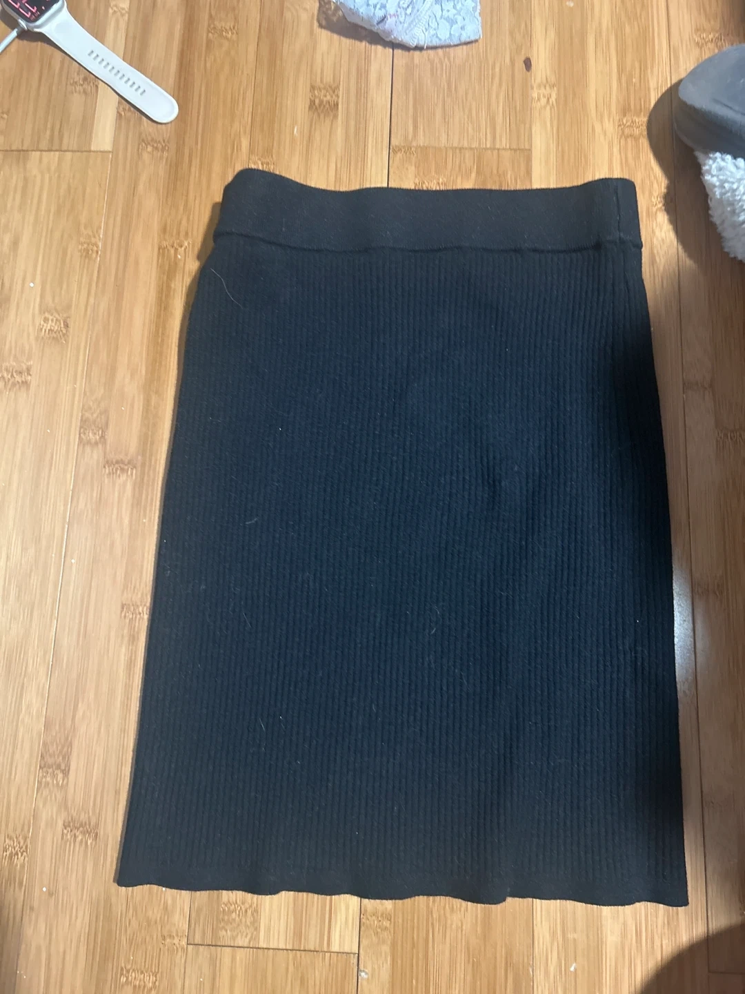 This is a black ribbed knit mini skirt from Wilfred. It's a size XS. Great for layering or wearing on its own!