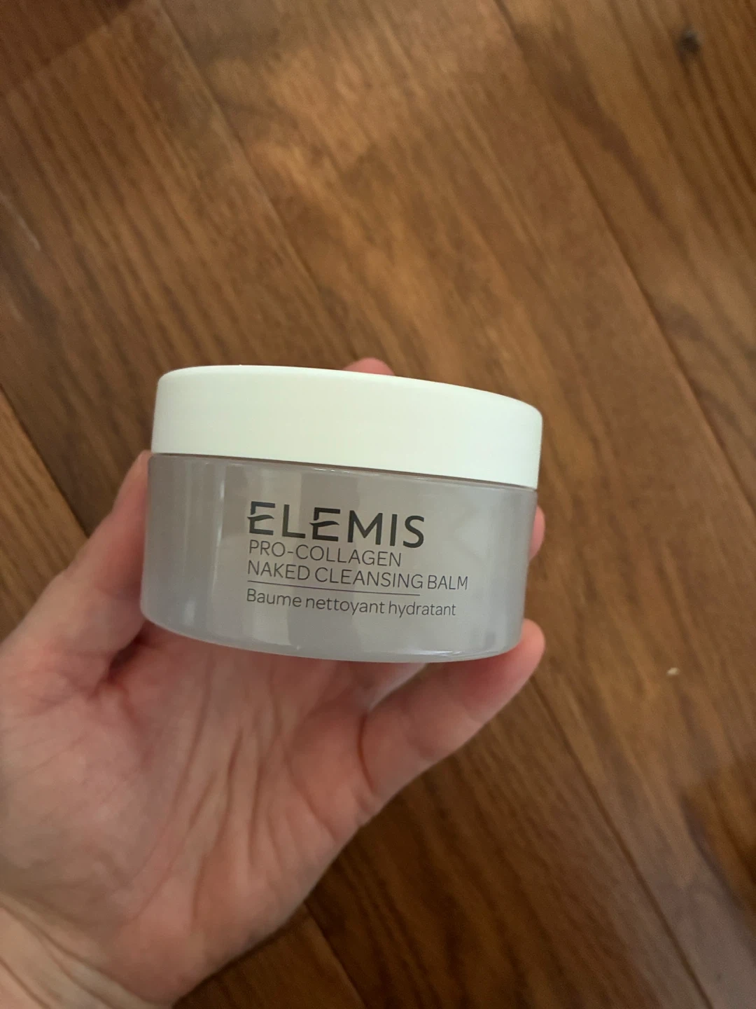 This is the Elemis Pro-Collagen Naked Cleansing Balm. It's a 50g jar. This cleansing balm helps to remove makeup and impurities.