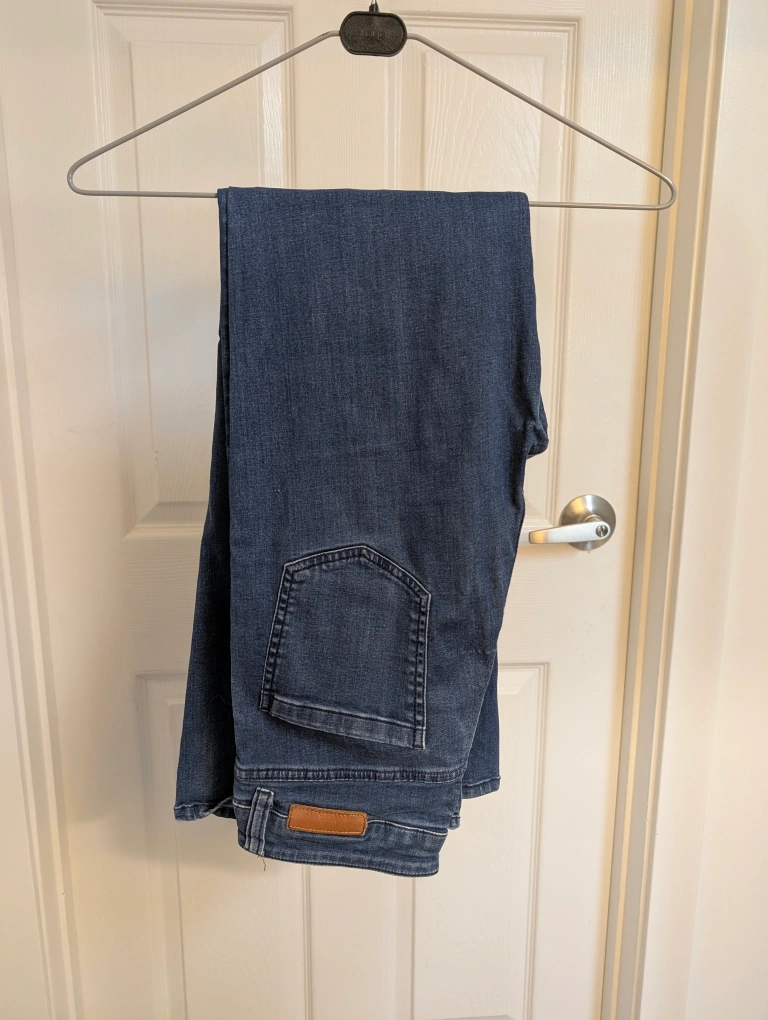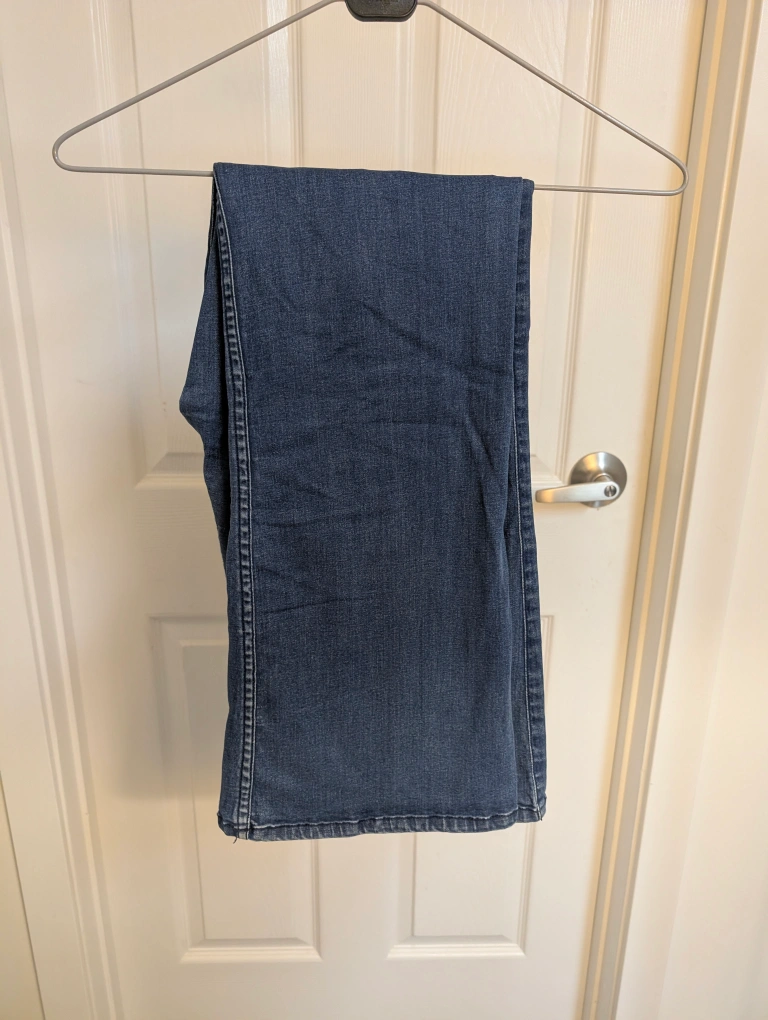 Selling a pair of women's dark blue jeans. They're in great condition and ready for a new home! They are a classic style that can be dressed up or down. No damages. Comes from a smoke free pet free environment