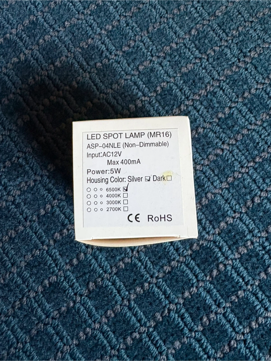 Selling a LED Spot Lamp (MR16). It's non-dimmable and uses AC12V with a power of 5W. The housing color is silver. It's in great condition and ready to use!