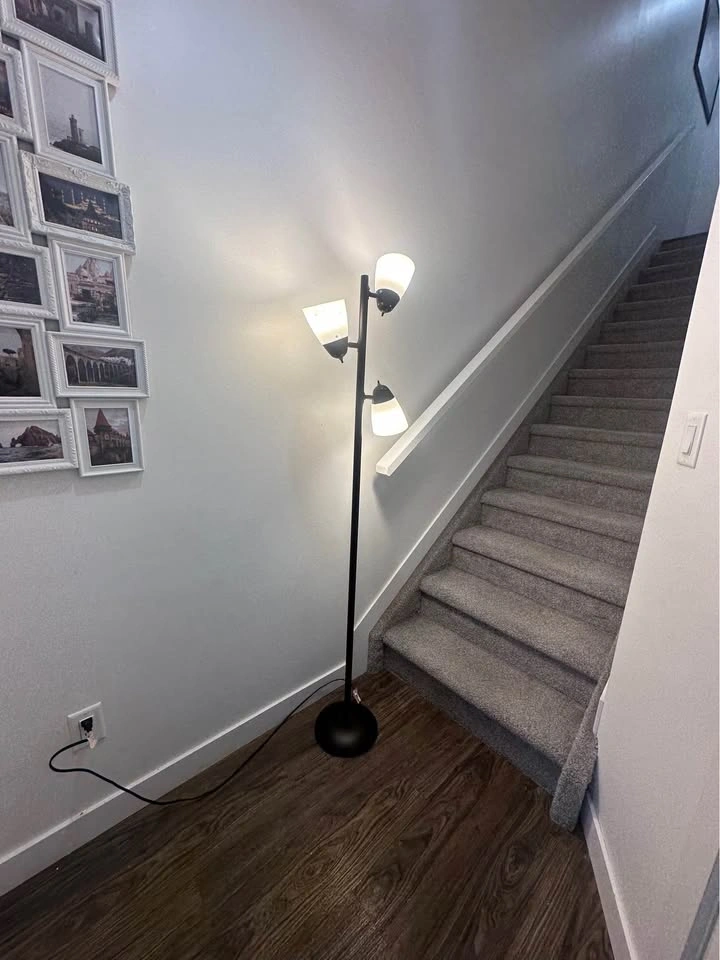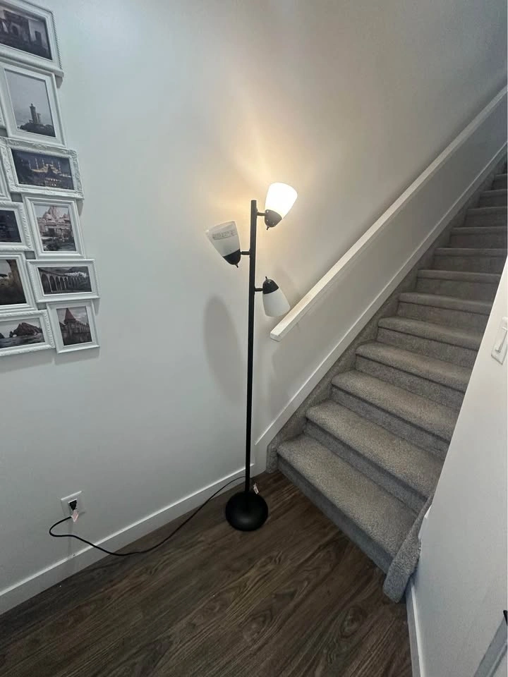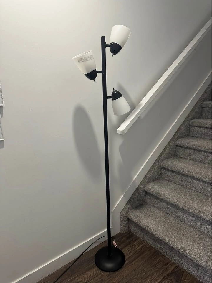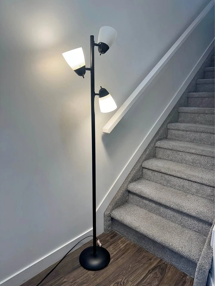 Brighten up your space with this stylish black floor lamp, featuring three adjustable lights for customized illumination. Perfect for living rooms, bedrooms, or office spaces, it combines functionality with a sleek modern design.