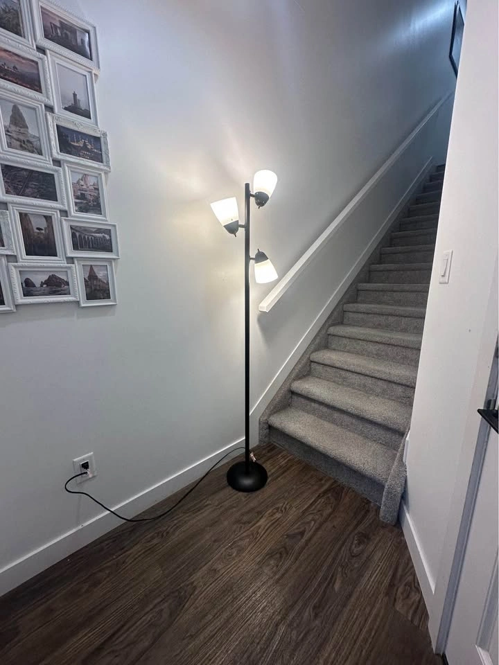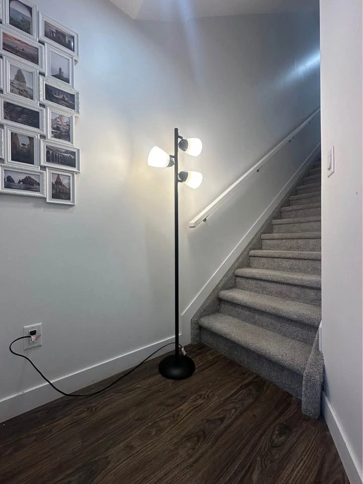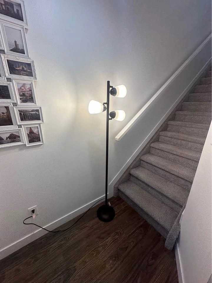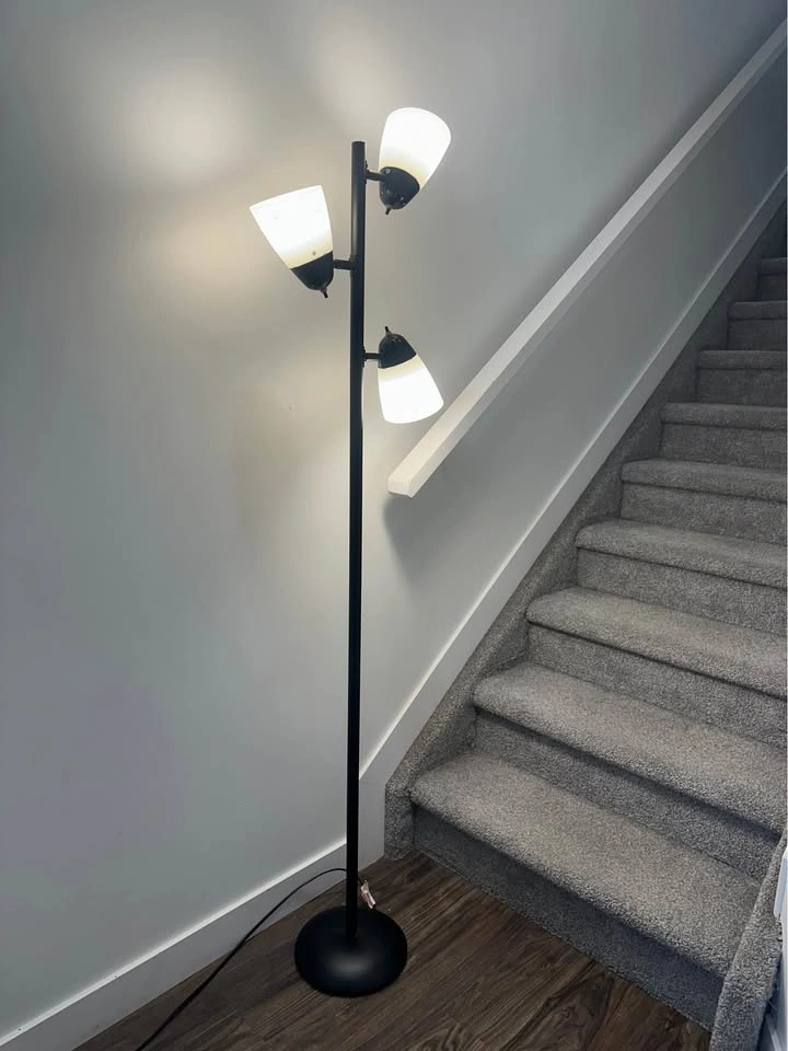 Brighten up your space with this stylish black floor lamp, featuring three adjustable lights for customized illumination. Perfect for living rooms, bedrooms, or office spaces, it combines functionality with a sleek modern design.