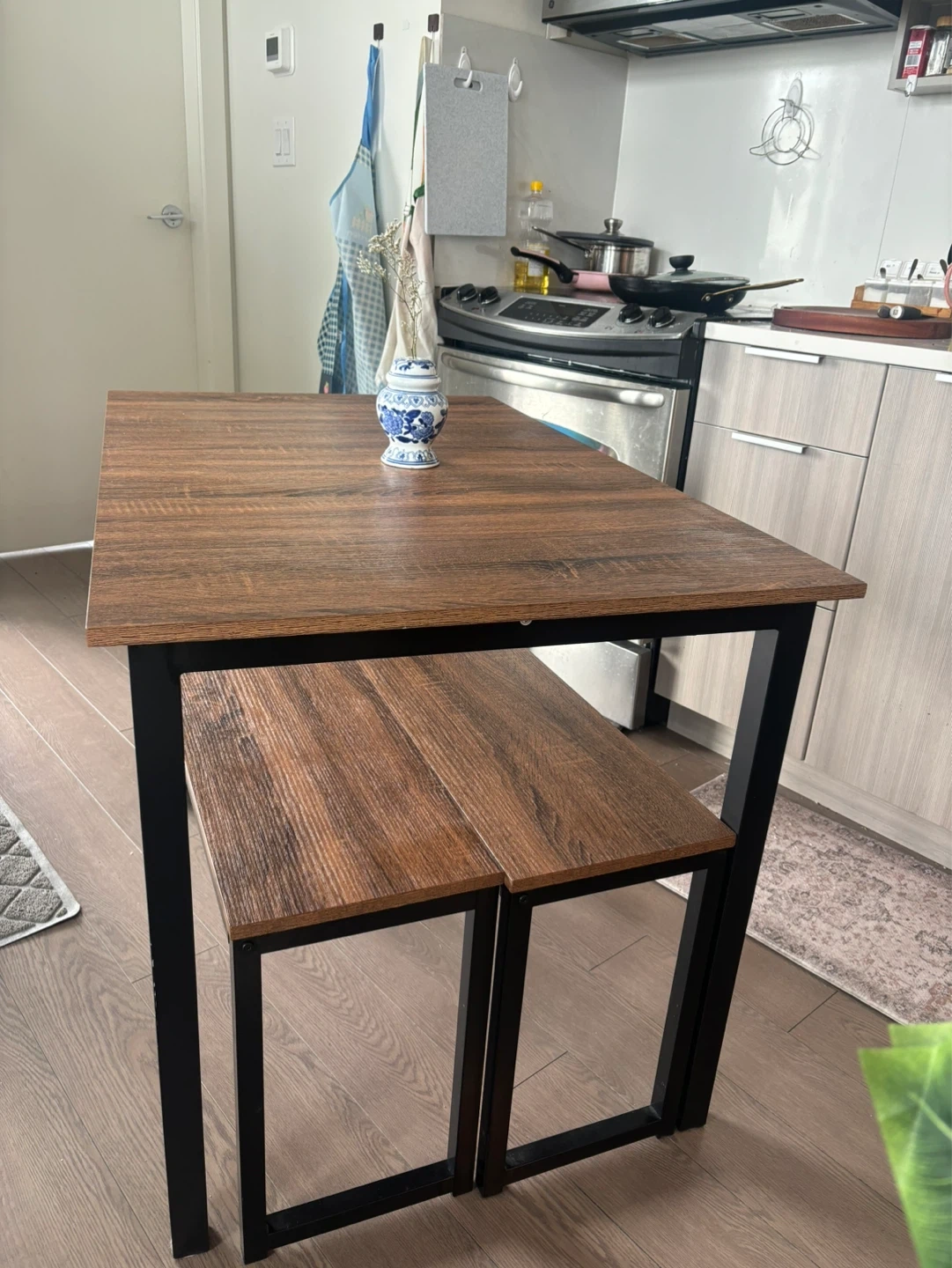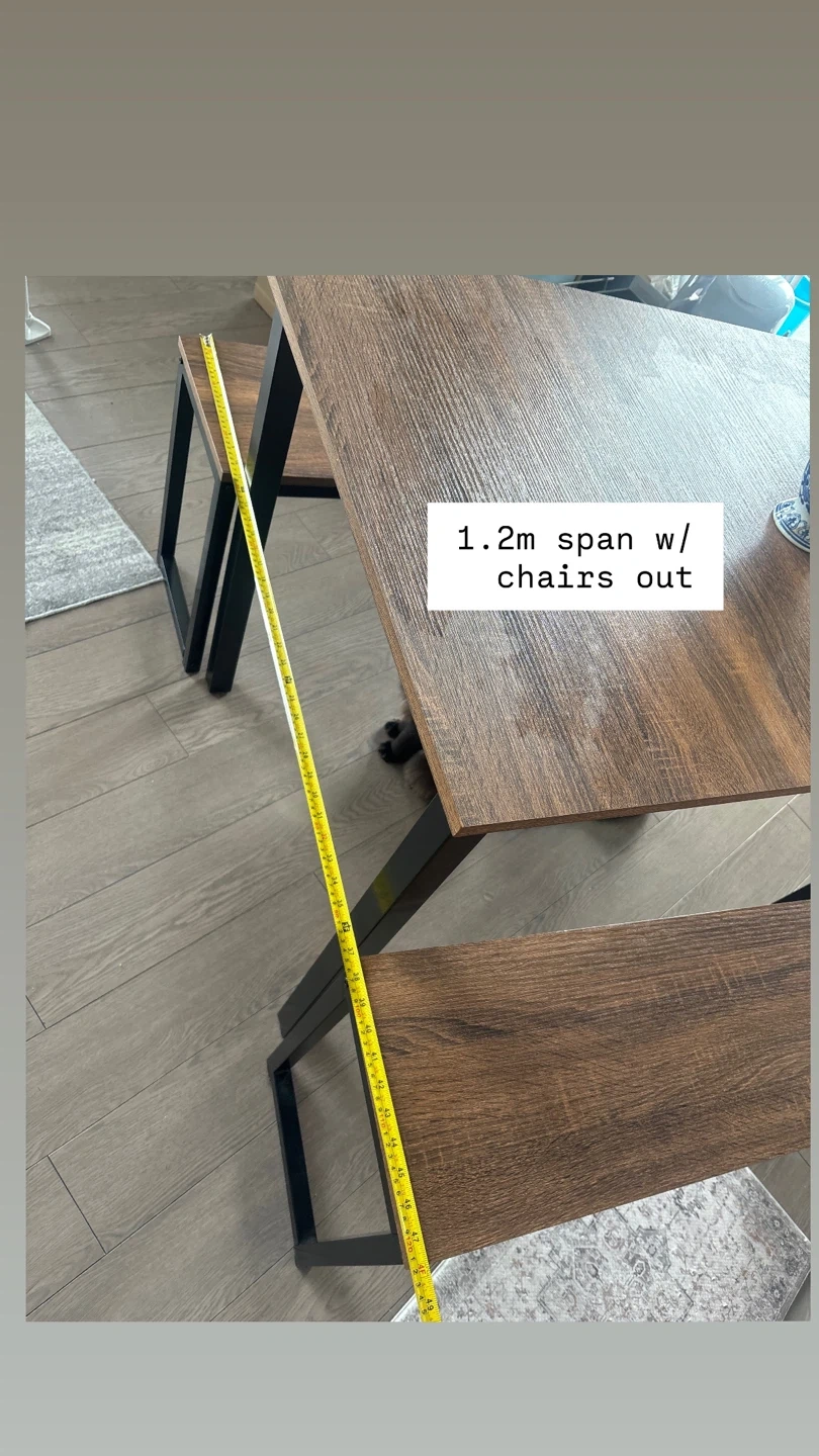 benches are able to be tucked in completely under the table which makes it grear for small spaces!