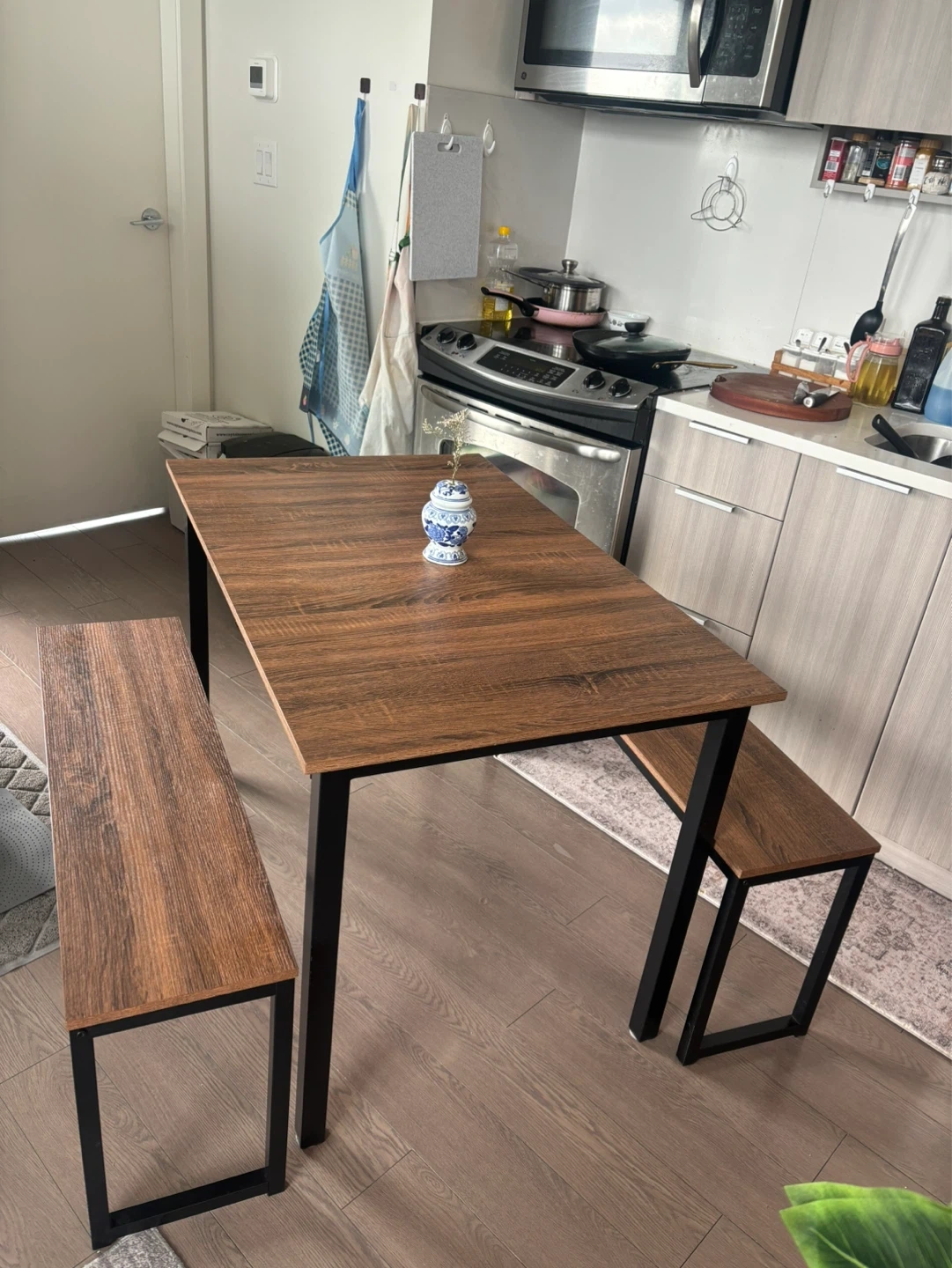 benches are able to be tucked in completely under the table which makes it grear for small spaces!