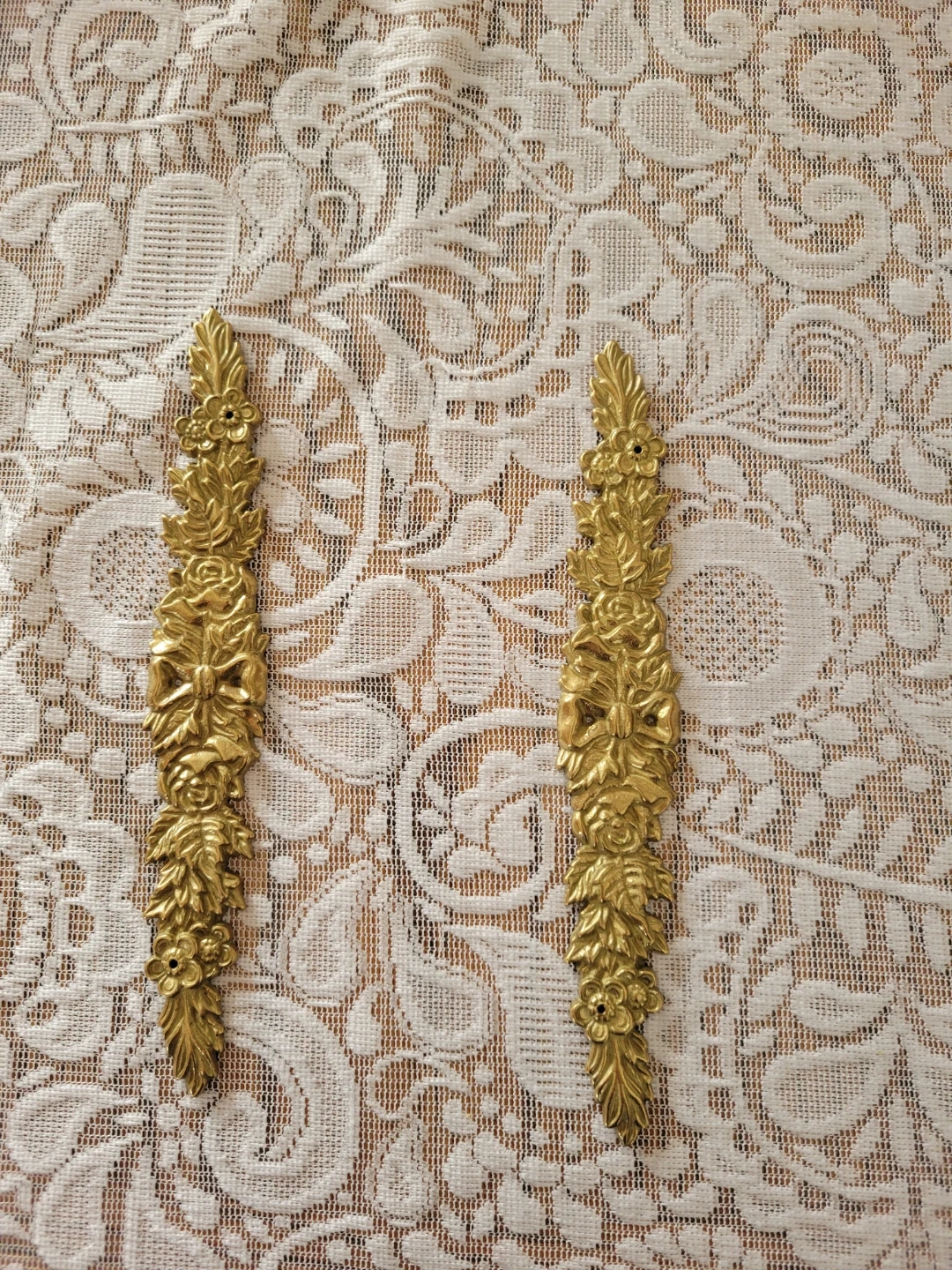 These items are vintage brass rose and bow ormolu decorative appliqués, originally sold by the Bombay Company.