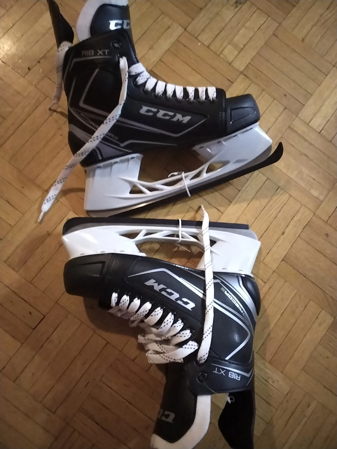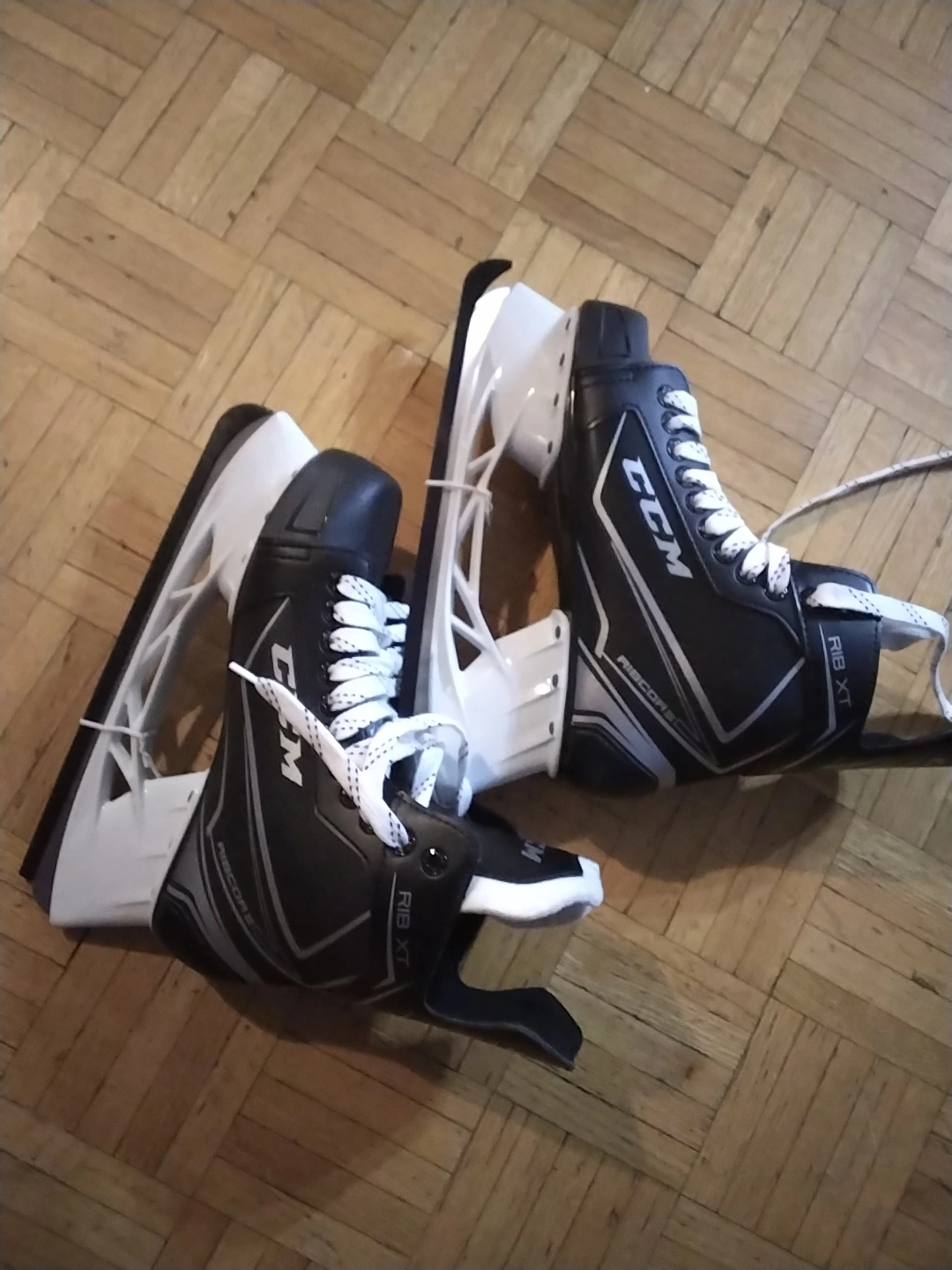 Selling a pair of Brand new CCM Rib XT ice hockey skates. They are black and white. Great for hitting the ice!