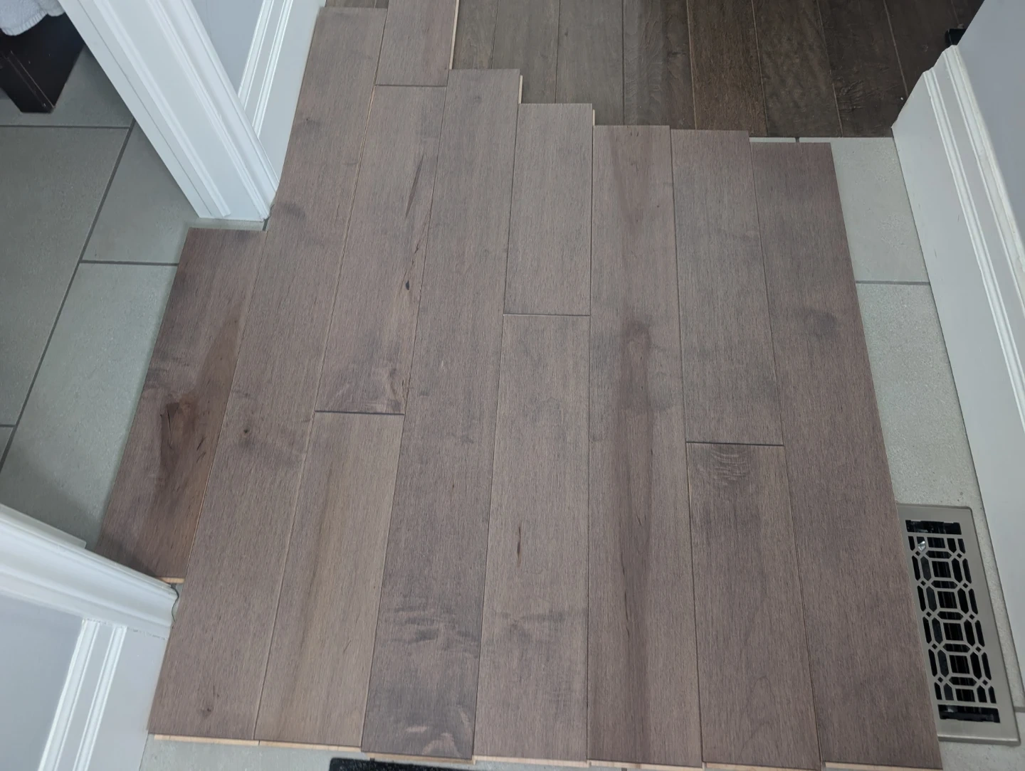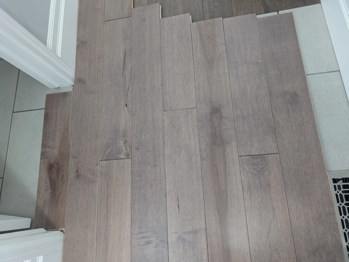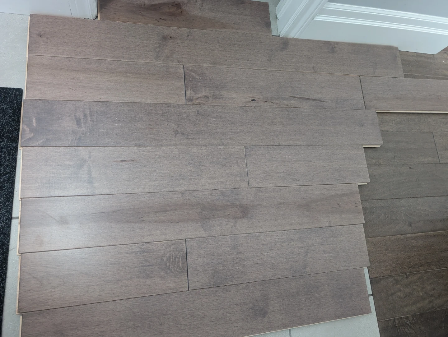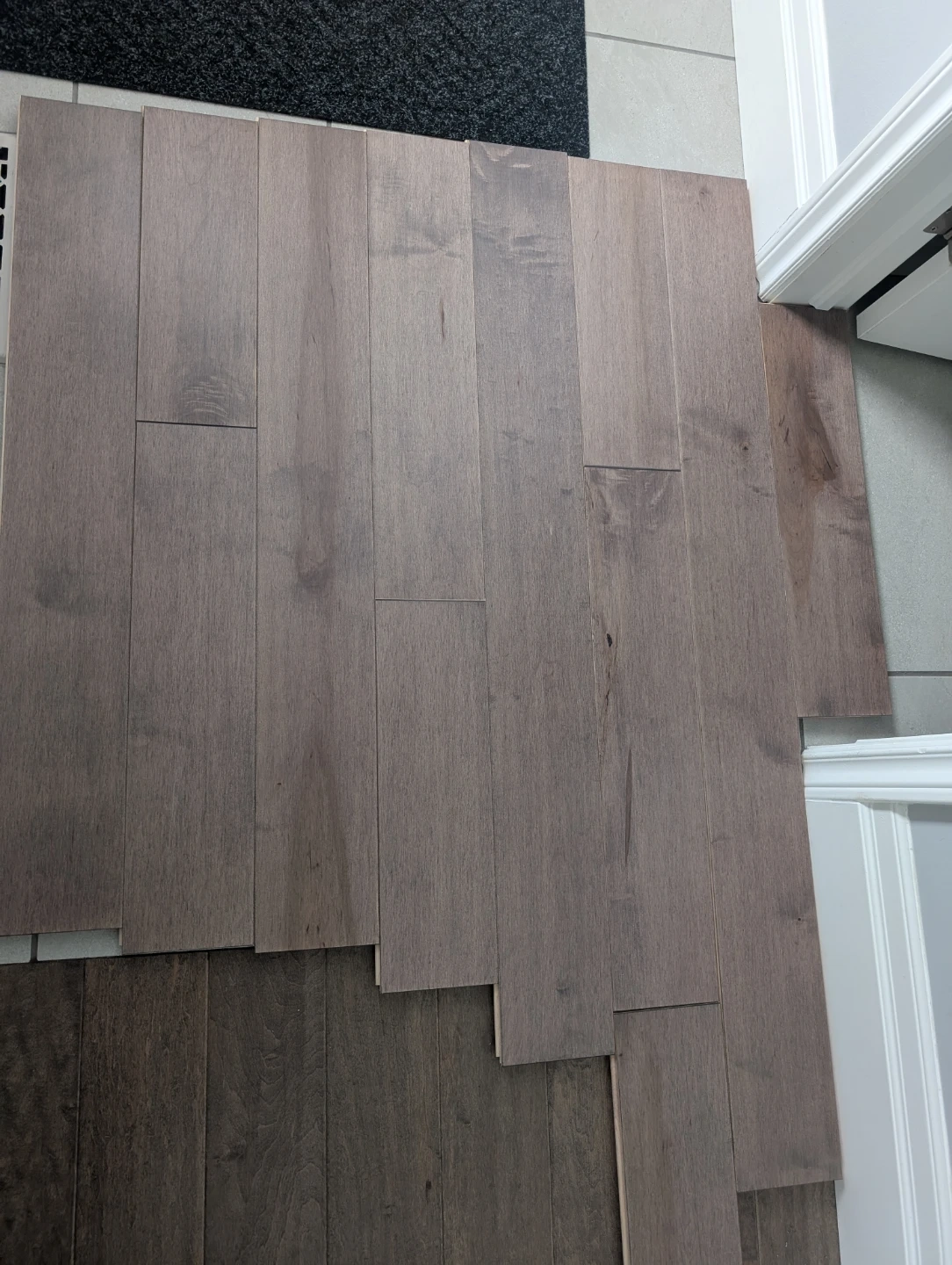 Brand new hard Maple driftwood hardwood flooring for sale. Driftwood matte, traditional grade, 3/4" inch thick floors, 5 1/4” extra wide, various lengths, made in Canada, 138 sq ft total. $250 FIRM for the lot.