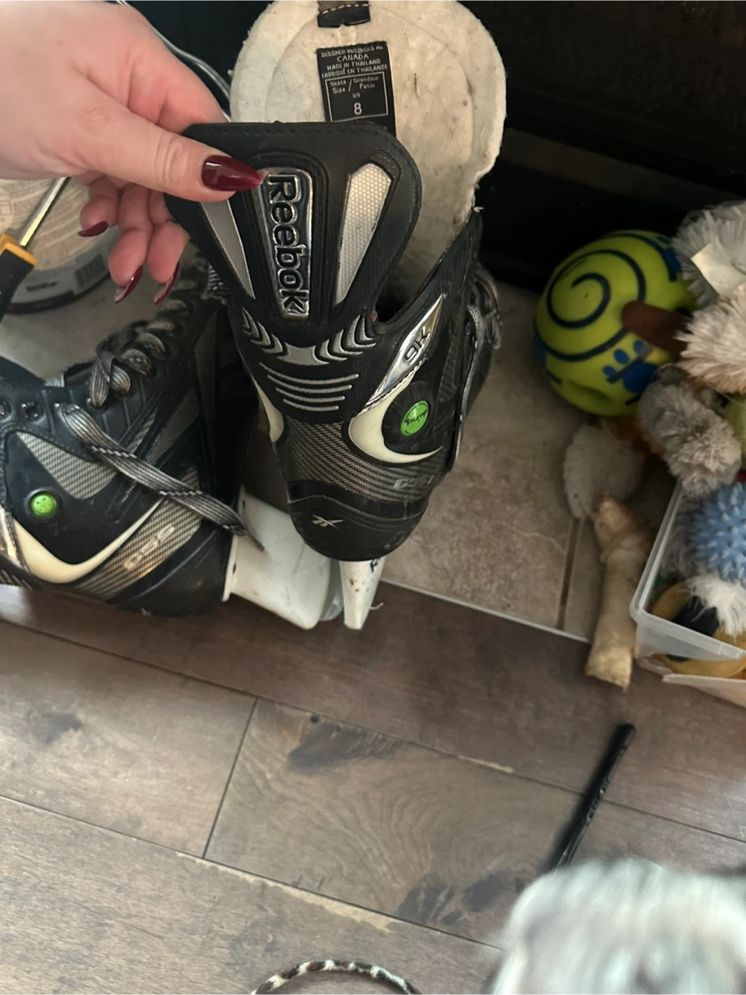 Selling a pair of Reebok ice hockey skates in size 8. They've been used, but still have lots of life left in them. Perfect for recreational skating or hockey!