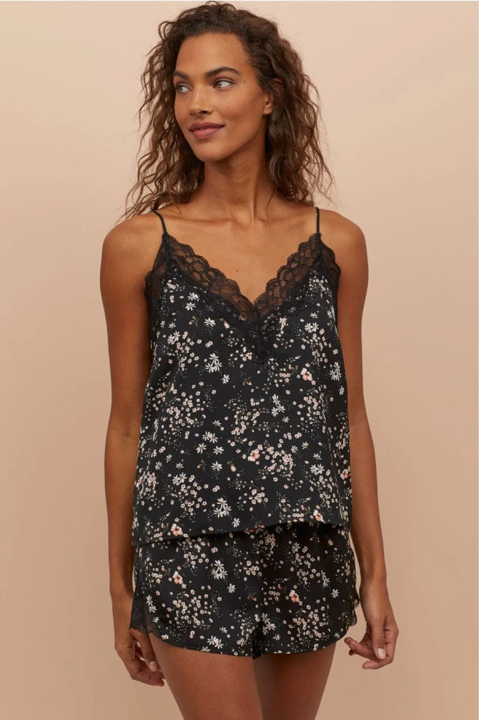 H&M Floral Lace Cami and Shorts Pajama Set