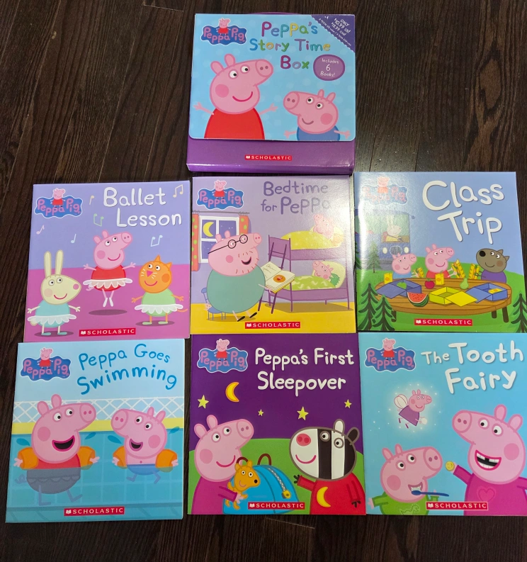 Selling a Peppa Pig's Story Time Box Set, which includes 6 books! The set includes titles such as: