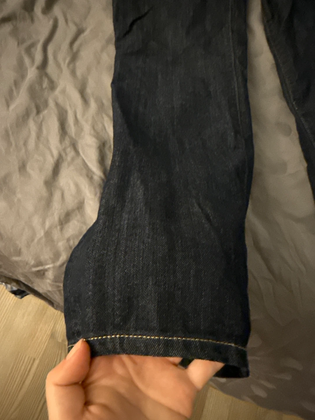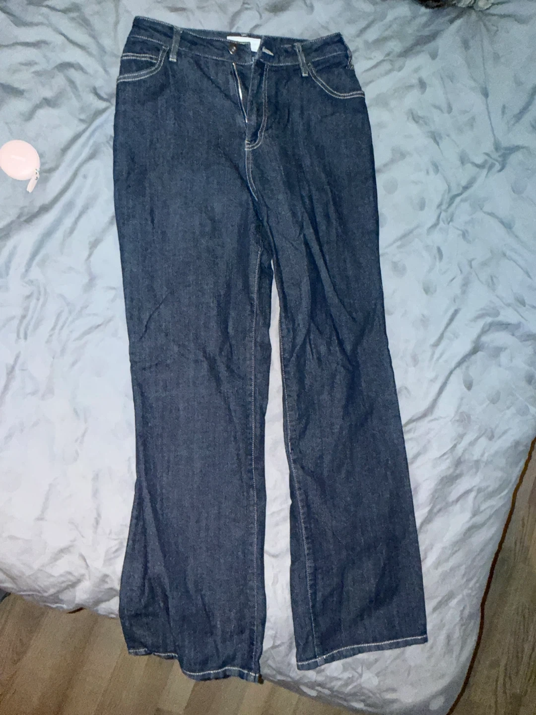 Dark wash denim jeans from Rope Picnic a designer Brand in Japan. These jeans have a flare leg style. Made of cotton material. Has some stretch.