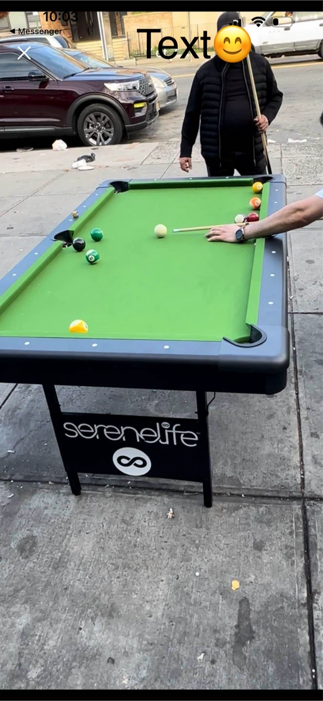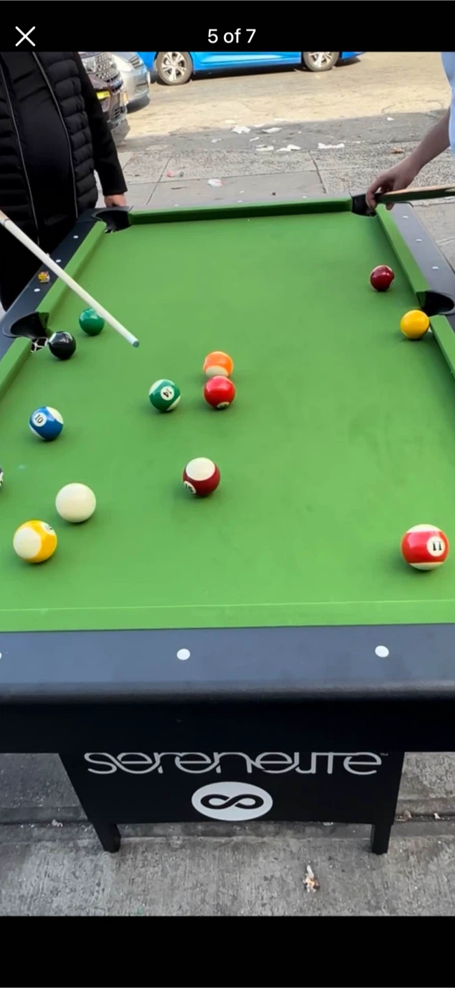 Used pool table comes with everything it’s 8x5 very fun fit on apt or house for late night play party it cost $799 new I’ll sale it for 300