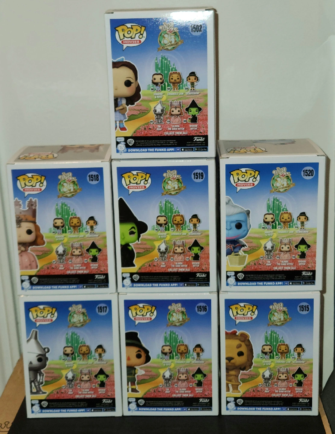 269Hi there! - yes, the bundle of 7 pictured is 100% available, no need to ask, only to message to pick up or ask any questions based on listed photos - located at M8V 1G5 & I will provide the full address if you are interested in picking up. Not offering shipping. Kindly asking for cash upon purchase. Price is firm. However, I am offering bundle deals and discounts if you're looking to purchase other items from my listings. Please see below - please be kind and respectful :) 85th anniversary Wizard of Oz Funko Pop set! Not separating them, thank you for your understanding. Included are: Dorothy and Toto Glinda The Good Witch Wicked Witch Flying Monkey (Specialty Series Exclusive) Scarecrow Tin Man Cowardly Lion All in perfect shape no damages of note. Asking price is less than $10 more than paid for them all, if that. Essentially hoping to find a good home for these at cost in this great condition :) Check out my listings for more collectibles, comics, cards, sports memorabilia, Funko Pops and Soda, and much more. No trades please. Thank you for taking the time to read the description.