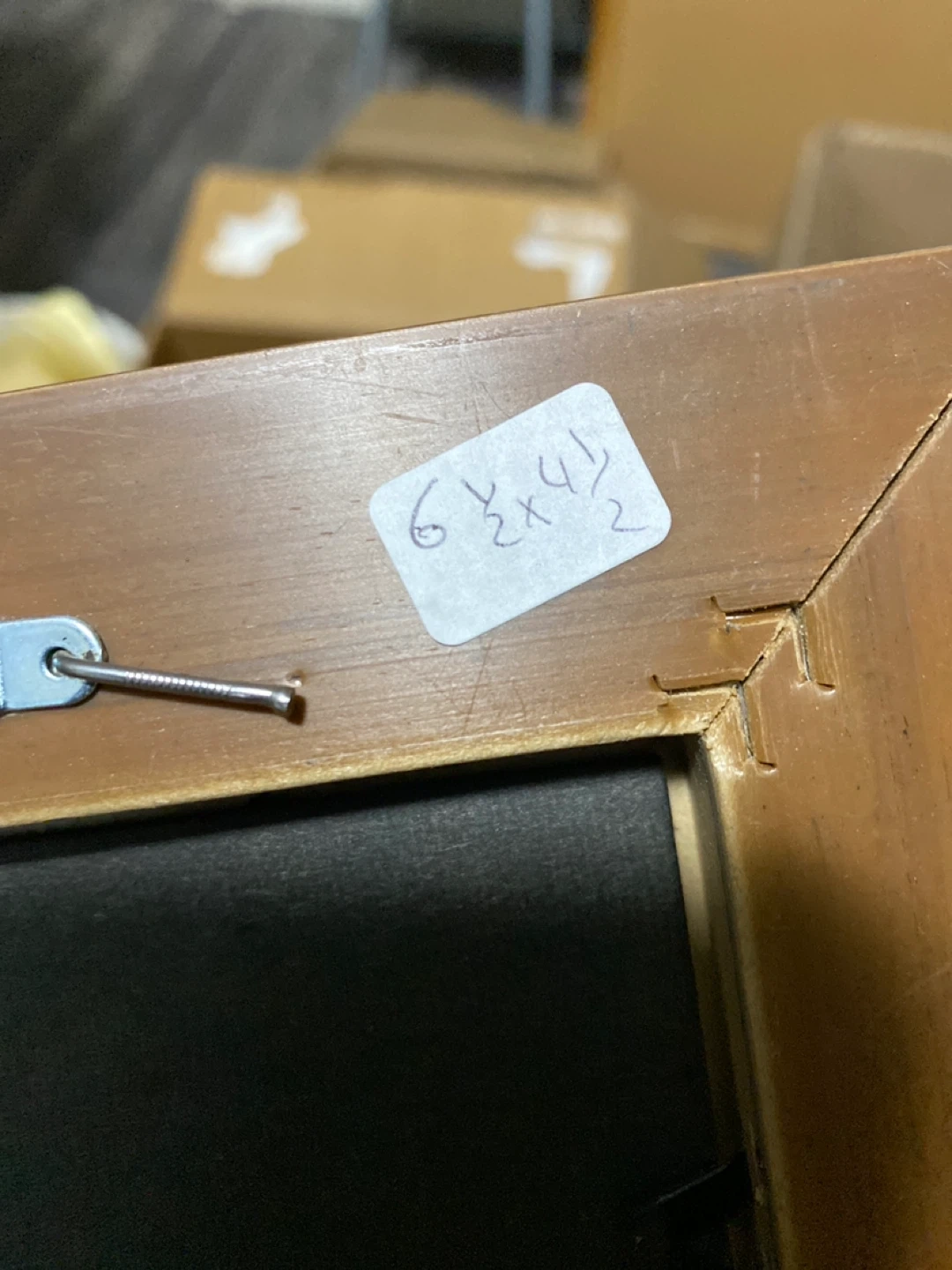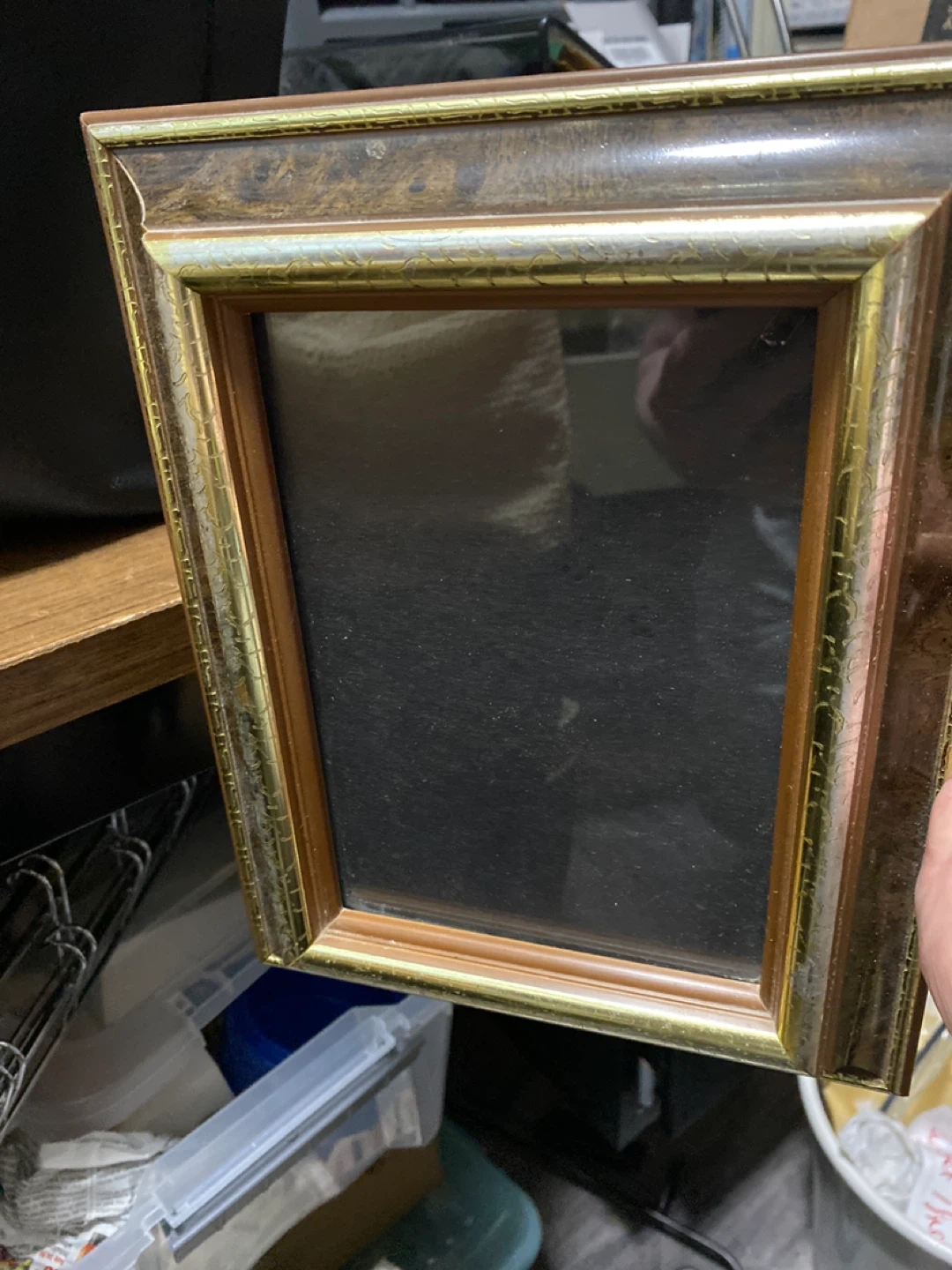 116Selling a picture frame that measures 6 1/2 x 4 1/2 inches. It has a wood-look finish with a gold accent. Perfect for displaying your favourite memories!