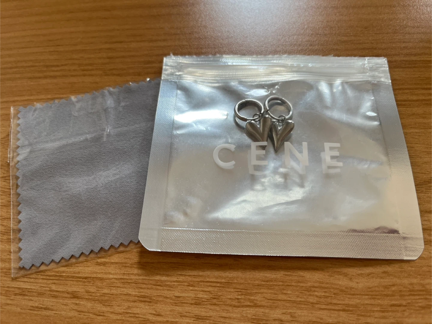 Heart Pierced earrings from CENE Tokyo. Their products use surgical stainless steel that is resistant to rust against water and sweat, and minimizes discoloration and deformation. Come with an jewelry cleaning sheet