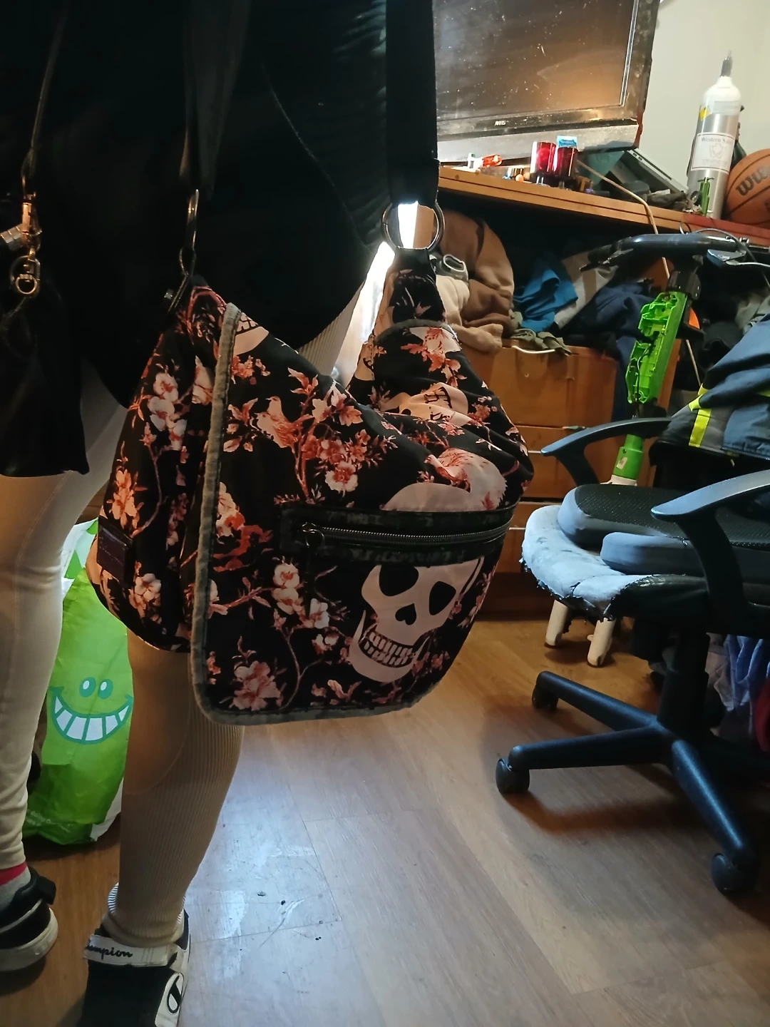 Selling a Betseyville hobo bag with a unique floral and skull pattern! It's in great condition and ready for a new owner. This bag is perfect for adding a bit of edge to your style
