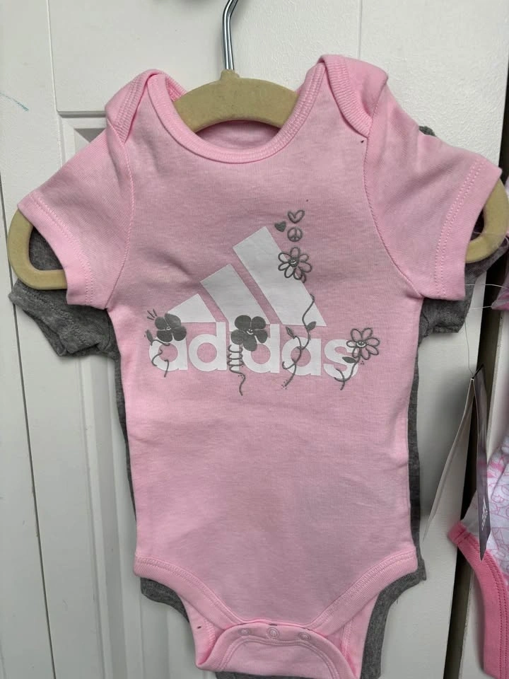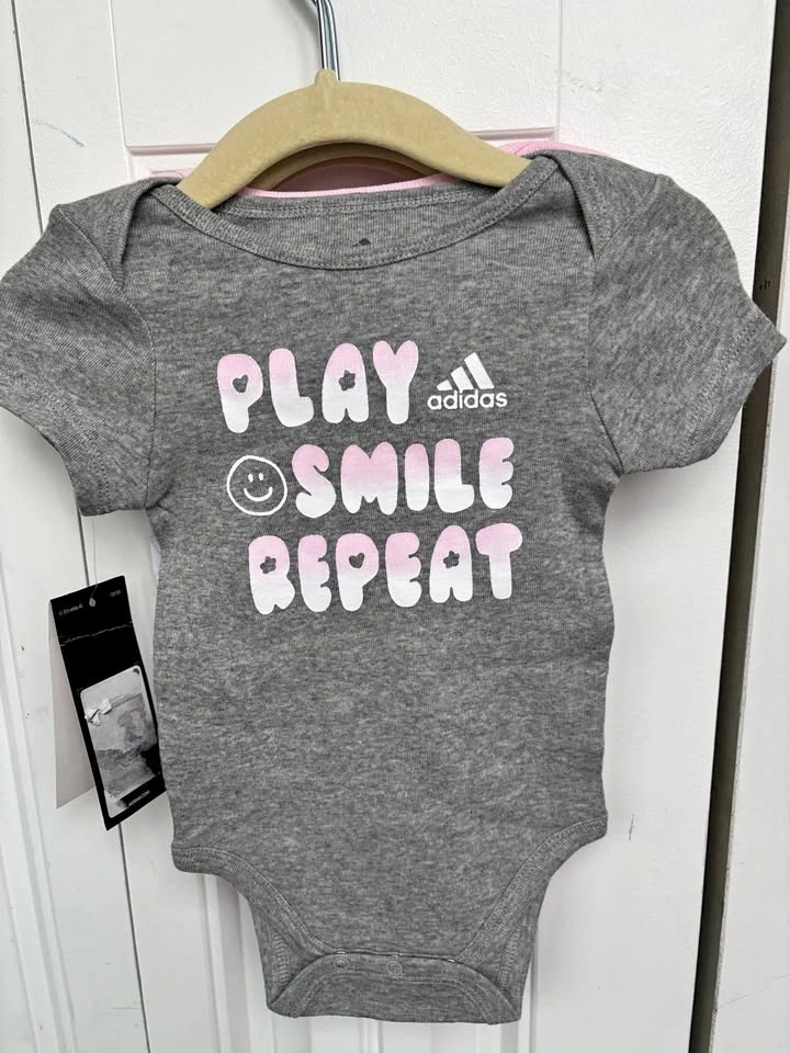 3 pack of BNWT Adidas Onesies/bodysuits. $10. PPU near Woodbine and Lumsden. Willing to bundle - please see my other 6/9 month listings.