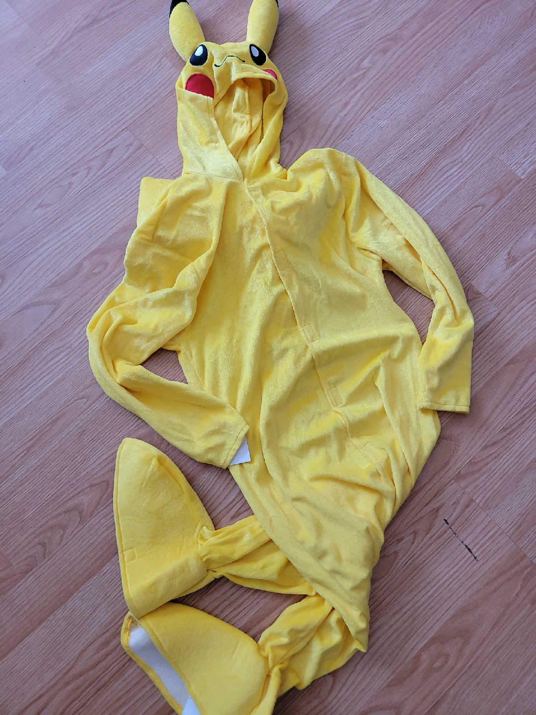 Selling a super cute Pikachu onesie! It's in great condition and perfect for lounging around the house or for a fun costume party. The bright yellow colour and adorable Pikachu design are sure to bring a smile to anyone's face
