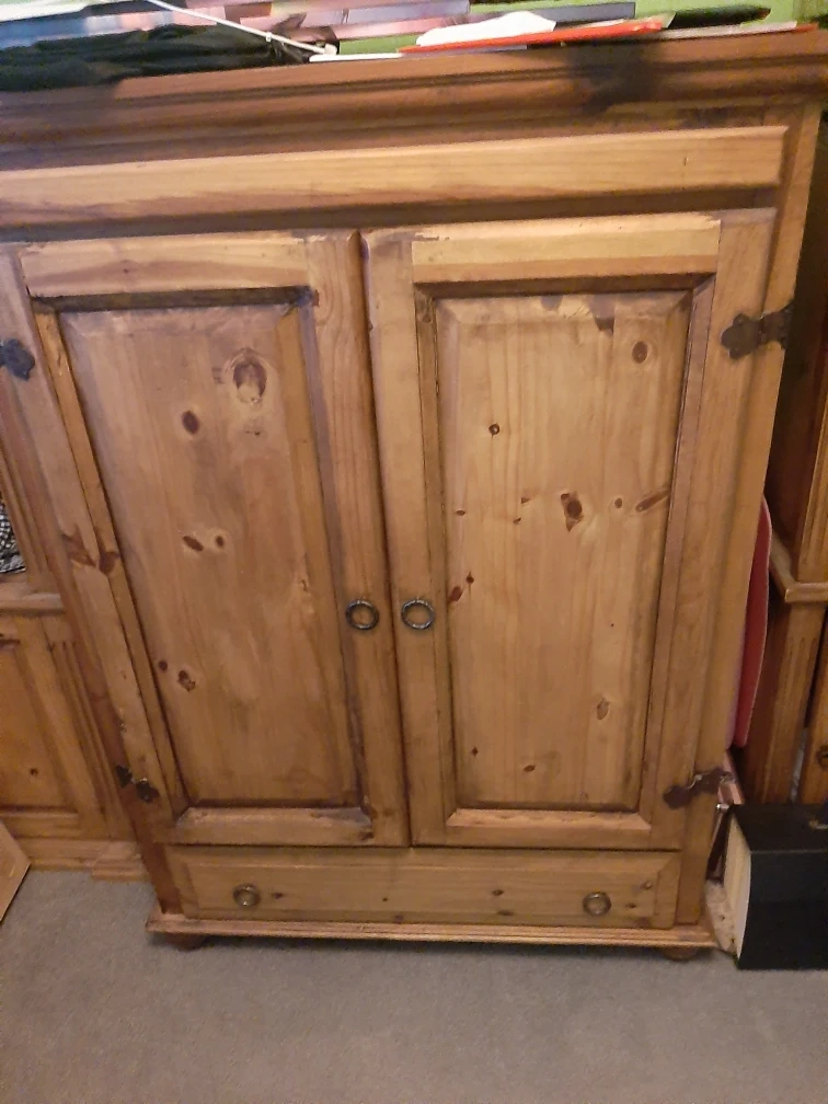 25purchased from Mexico plus.. Selling a solid pine wood cabinet. It's a beautiful piece with lots of storage space. Great for any room in the house! excellent condition