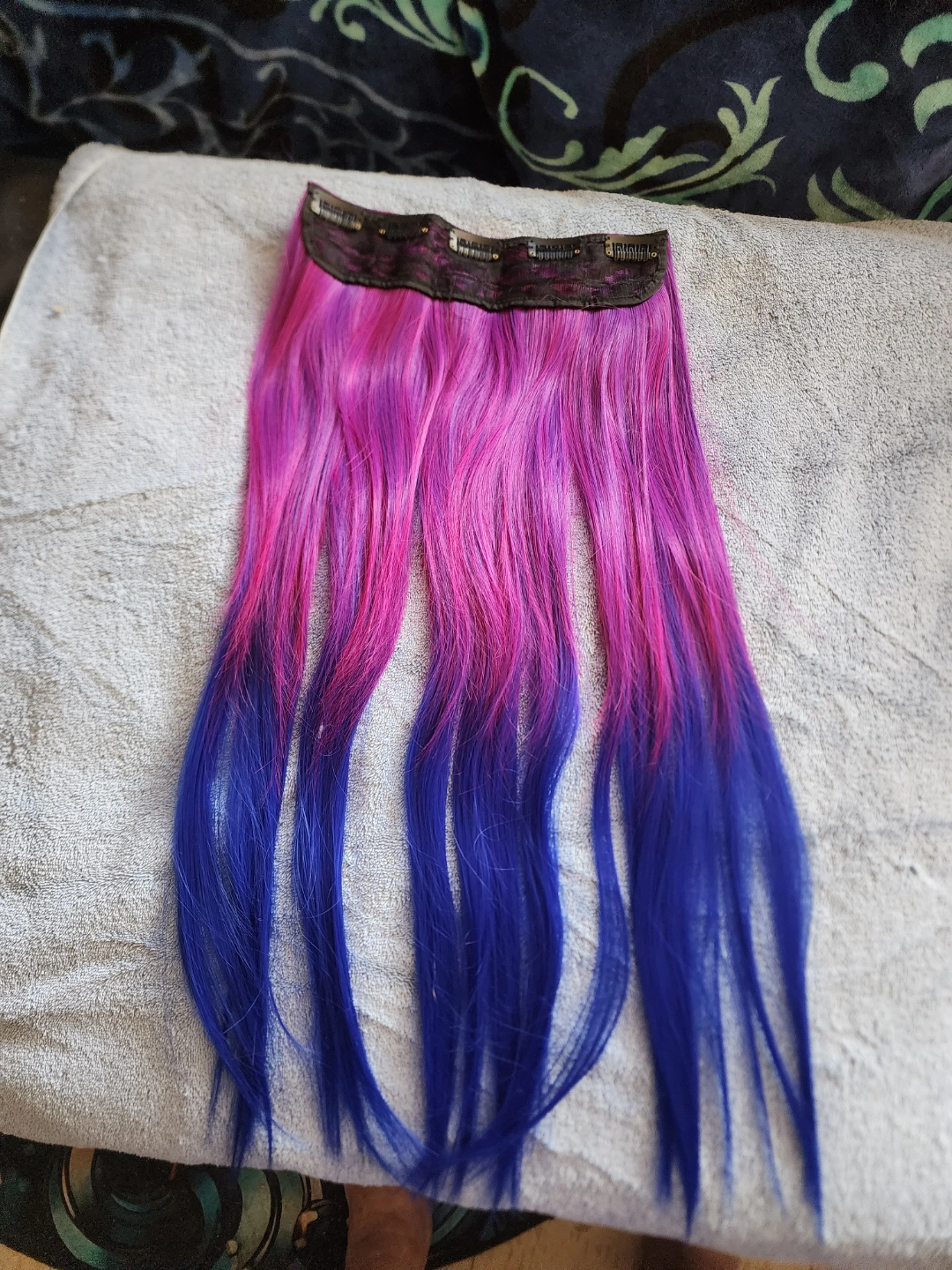 Gorgeous ombre clip-in hair extensions. Features vibrant pink and blue colours. Adds volume and length. Great for adding a pop of colour. used it once for 2 hours