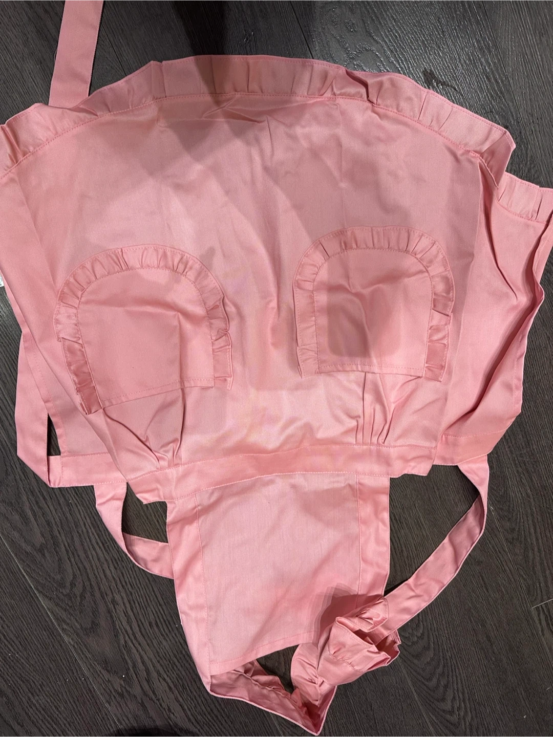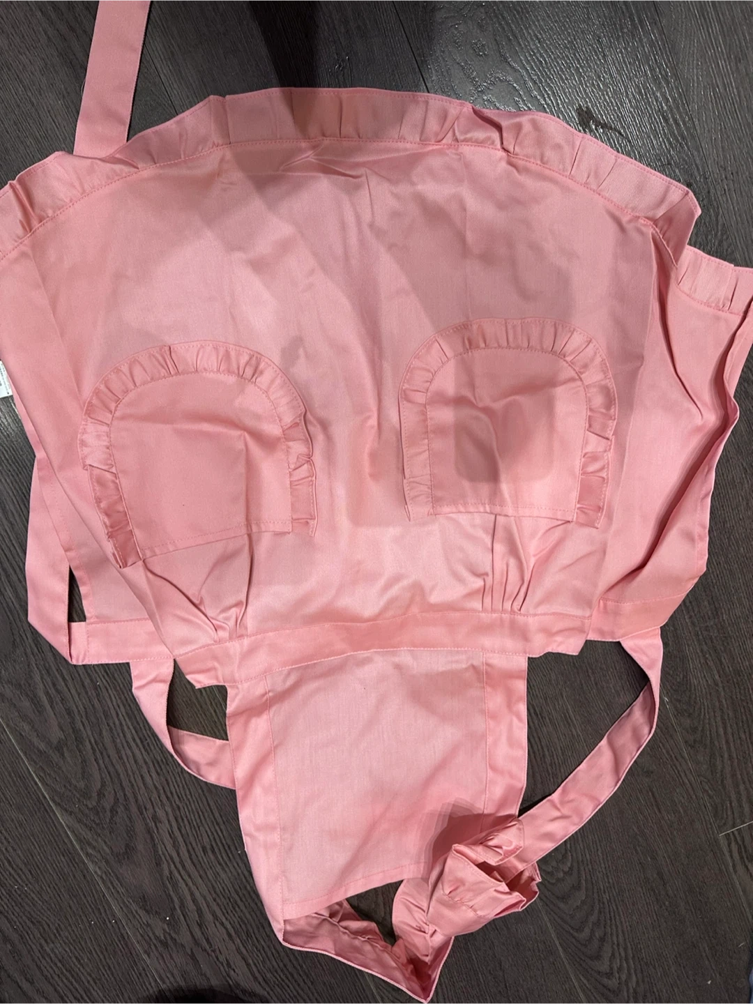 20Selling a cute pink apron set! Includes the apron itself and two matching pieces, all in a lovely shade of pink. Perfect for baking or crafting