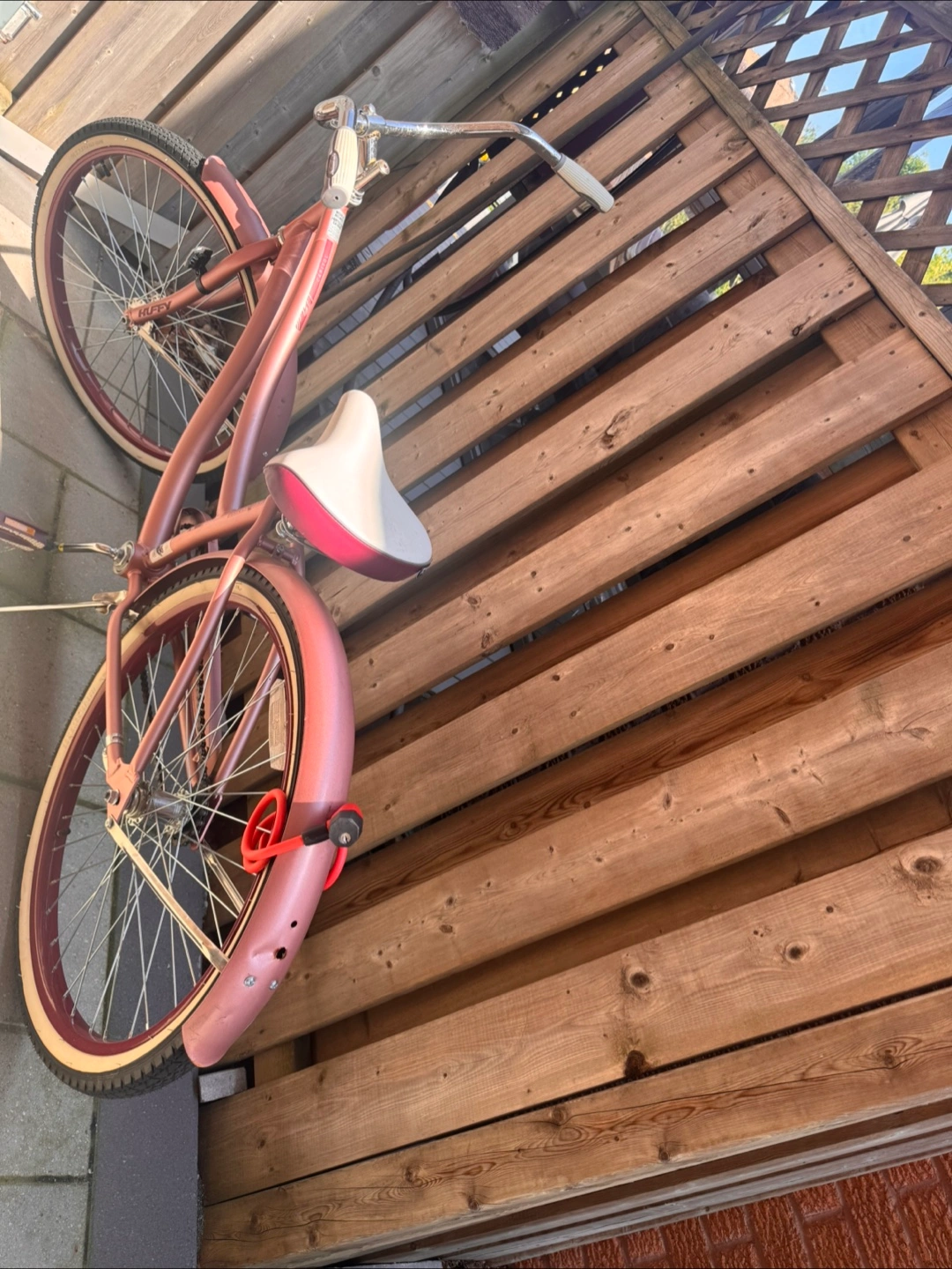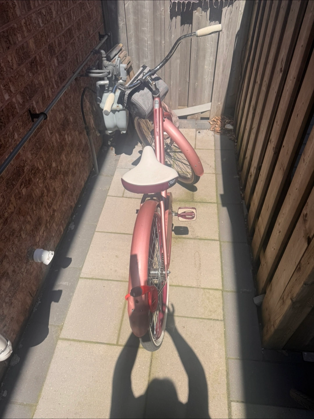 5Selling a cute pink cruiser bike! It's in great condition and ready for some summer rides. Perfect for cruising around town or enjoying a leisurely ride in the park. It comes with a lock and a bag at front to secure mobile and bottles while riding.