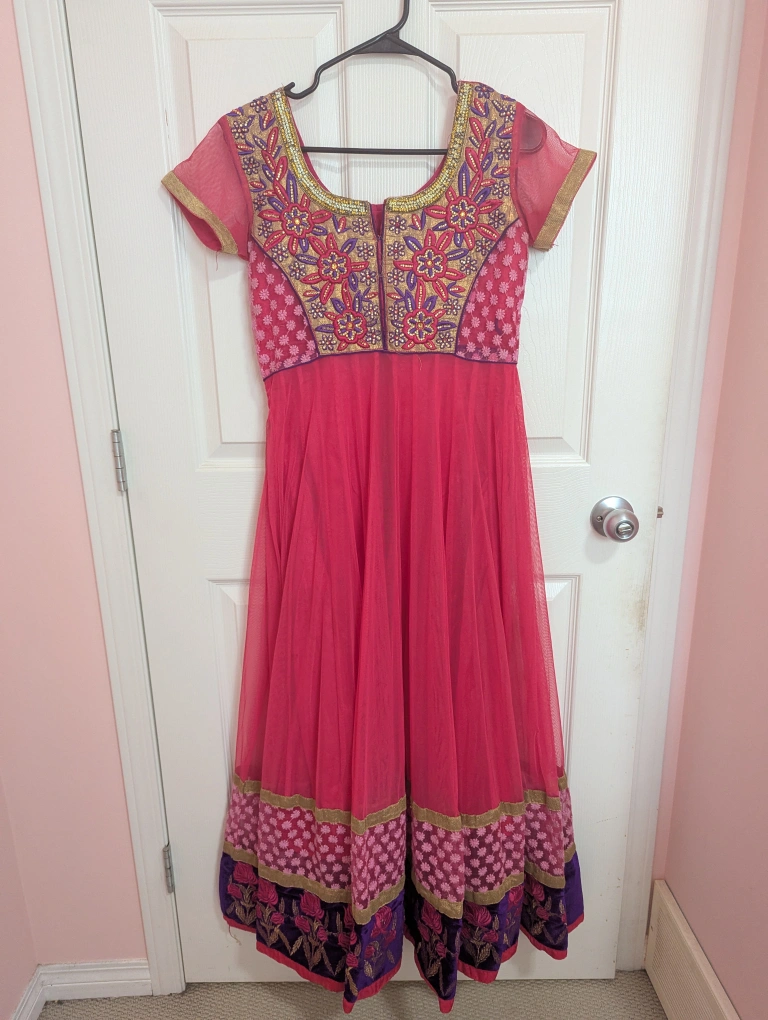 10Elevate Your Festive Style! ✨ Stunning pink Indian suit for sale! Perfect for Navratri, Diwali, weddings, or any special occasion. This beautiful outfit is sure to turn heads! Details: ✦ Excellent condition (10/10) ✦ Cleaned and ready to wear ✦ Smoke-free and pet-free home ✦ Fits Small to Medium (send me a message for specific measurements) Get ready to shine in pink without the hefty price tag! Interested buyers, please send me a message or request more photos