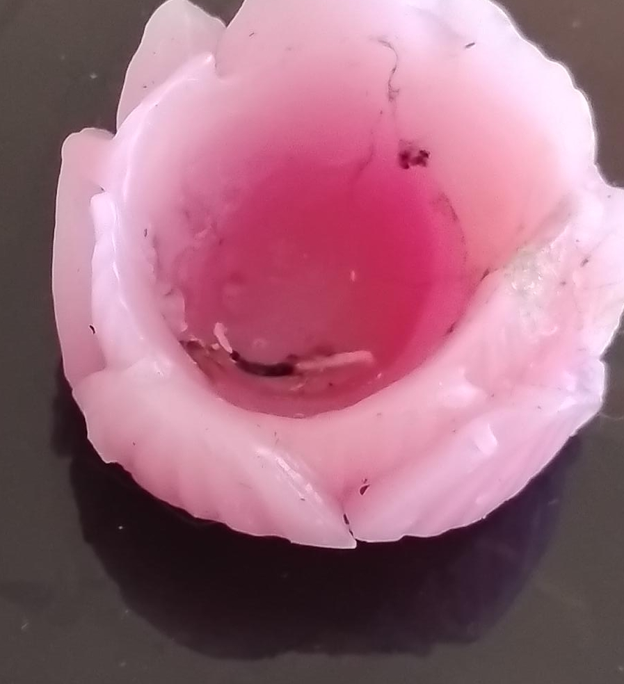 A cute pink flower candle! It's a lovely decorative piece for any room. It has a soft, warm glow when lit, perfect for creating a cozy atmosphere